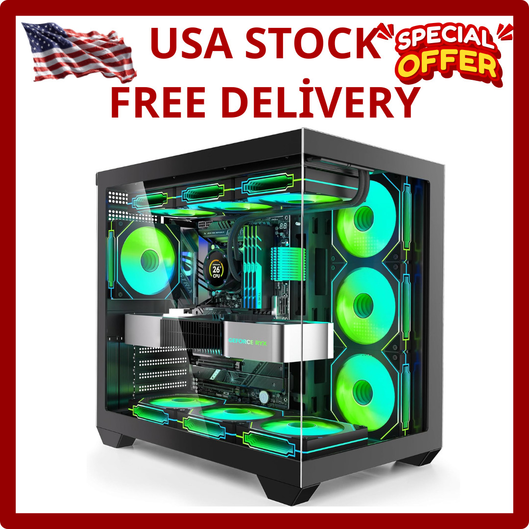 Gaming PC Case, ATX Cpmputer CASE with 7 PWM ARGB Fans Pre-Installed,Type-C Full
