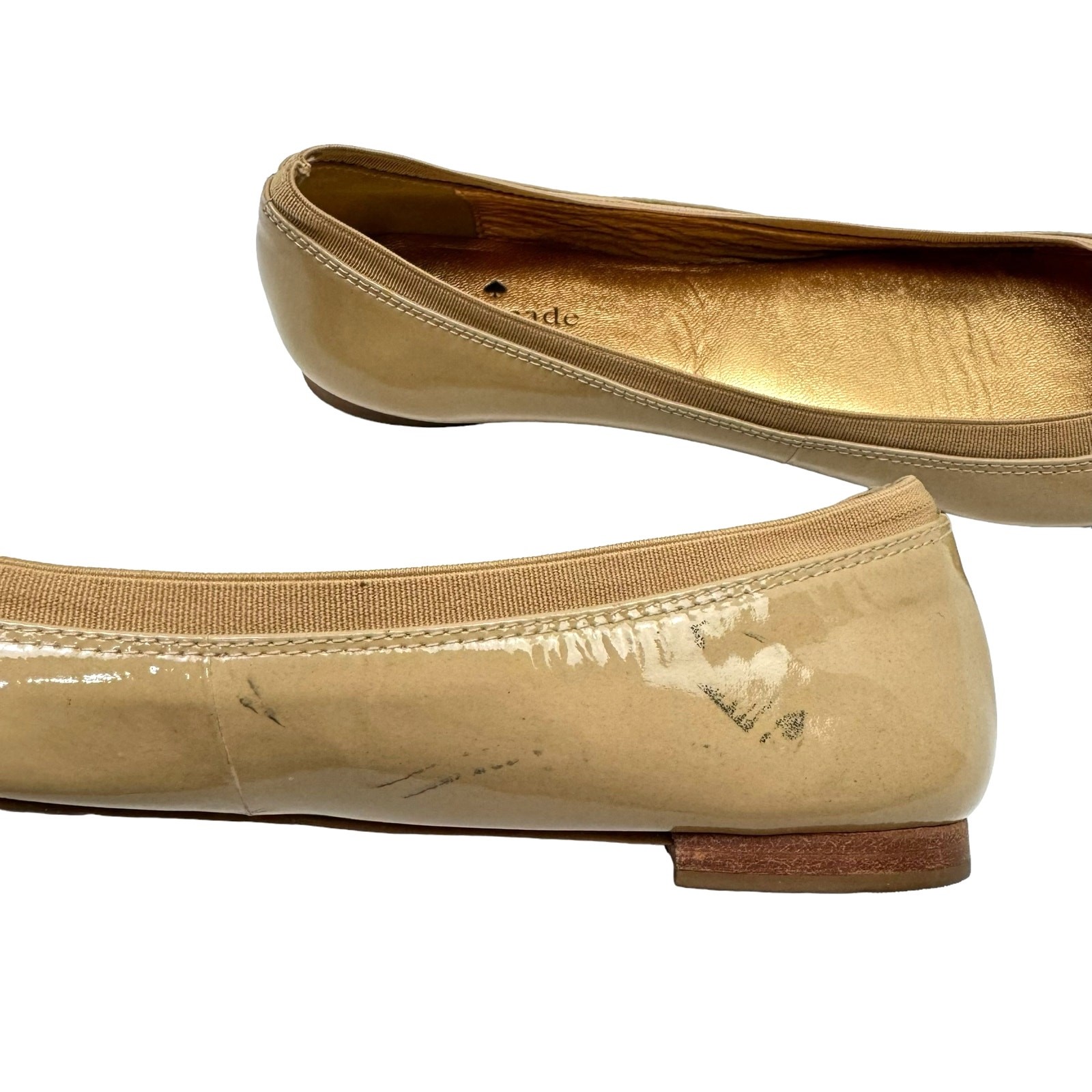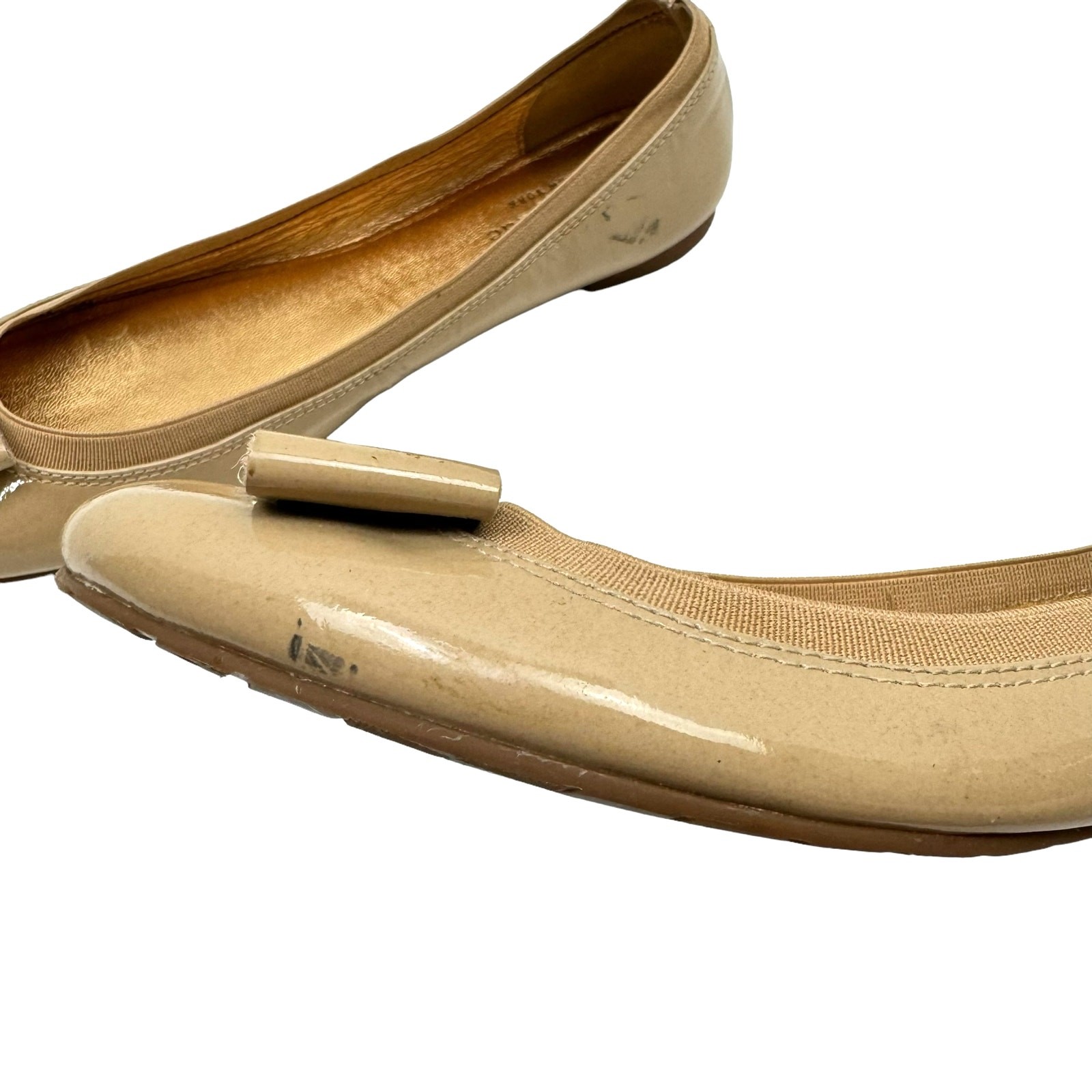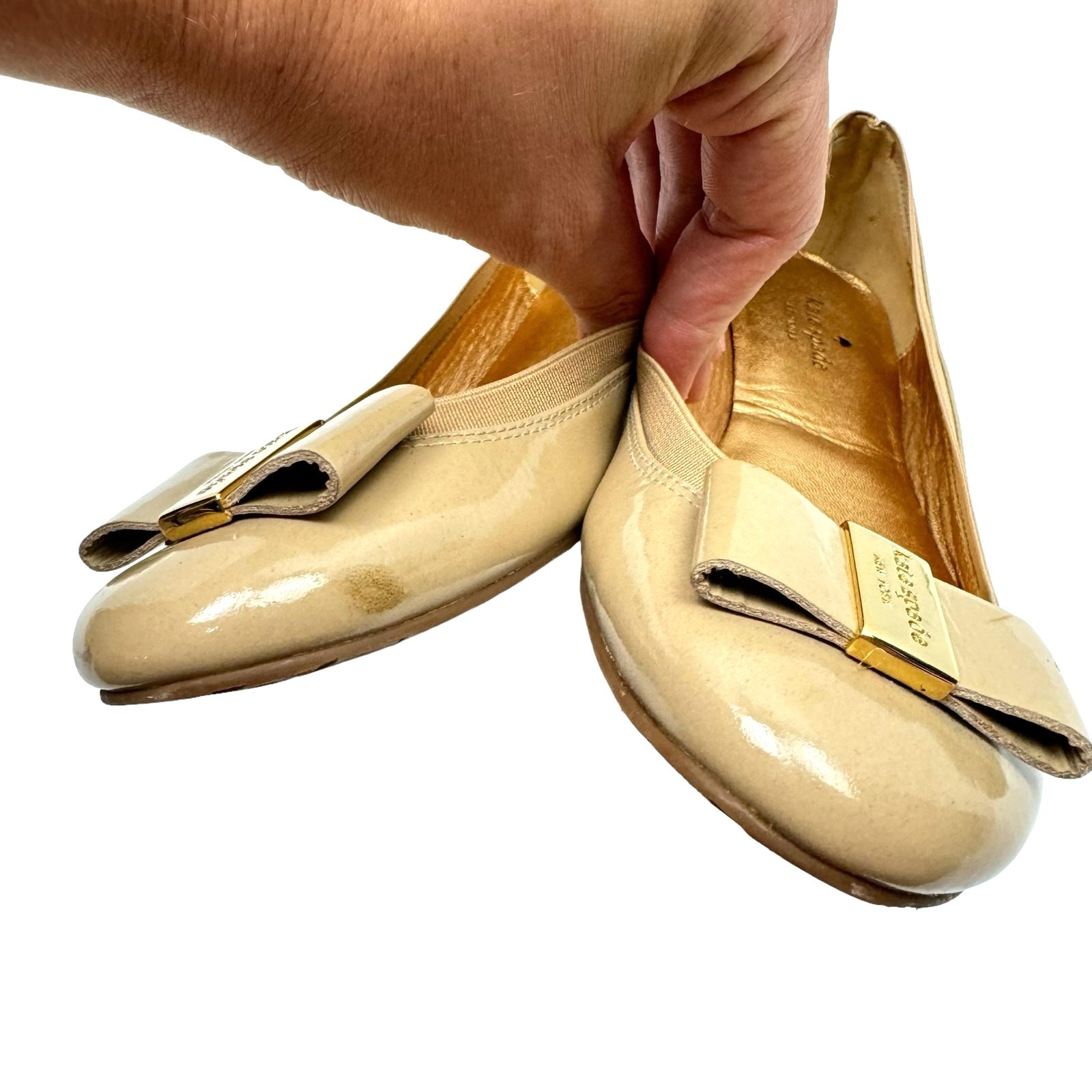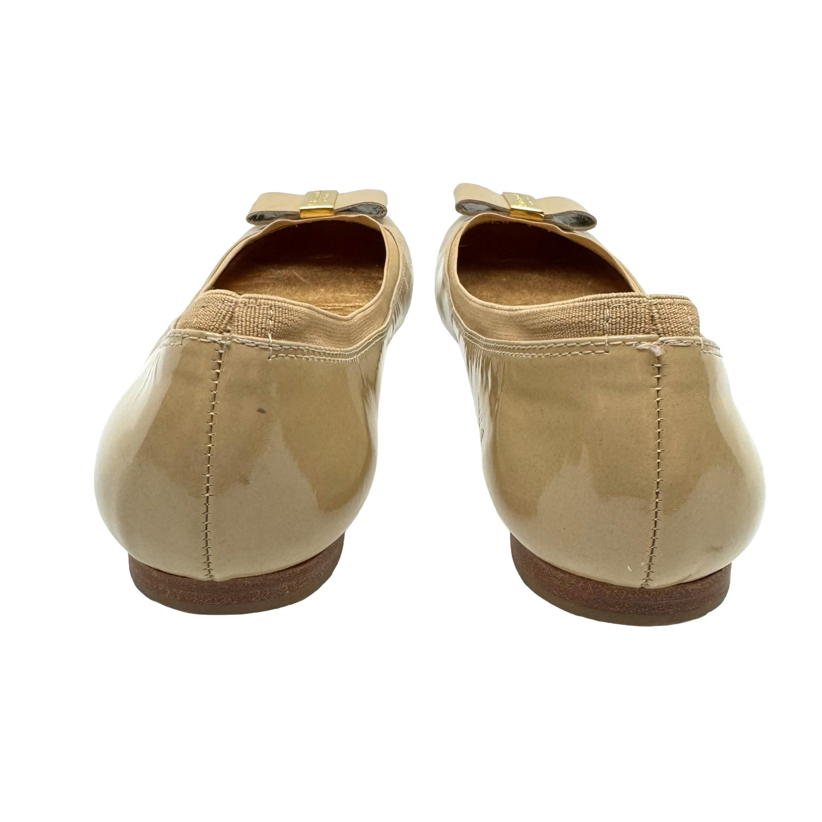 как выглядит Kate Spade New York 9 Neutral Tan Patent Leather Tock Bow Simple Ballet Flats фото