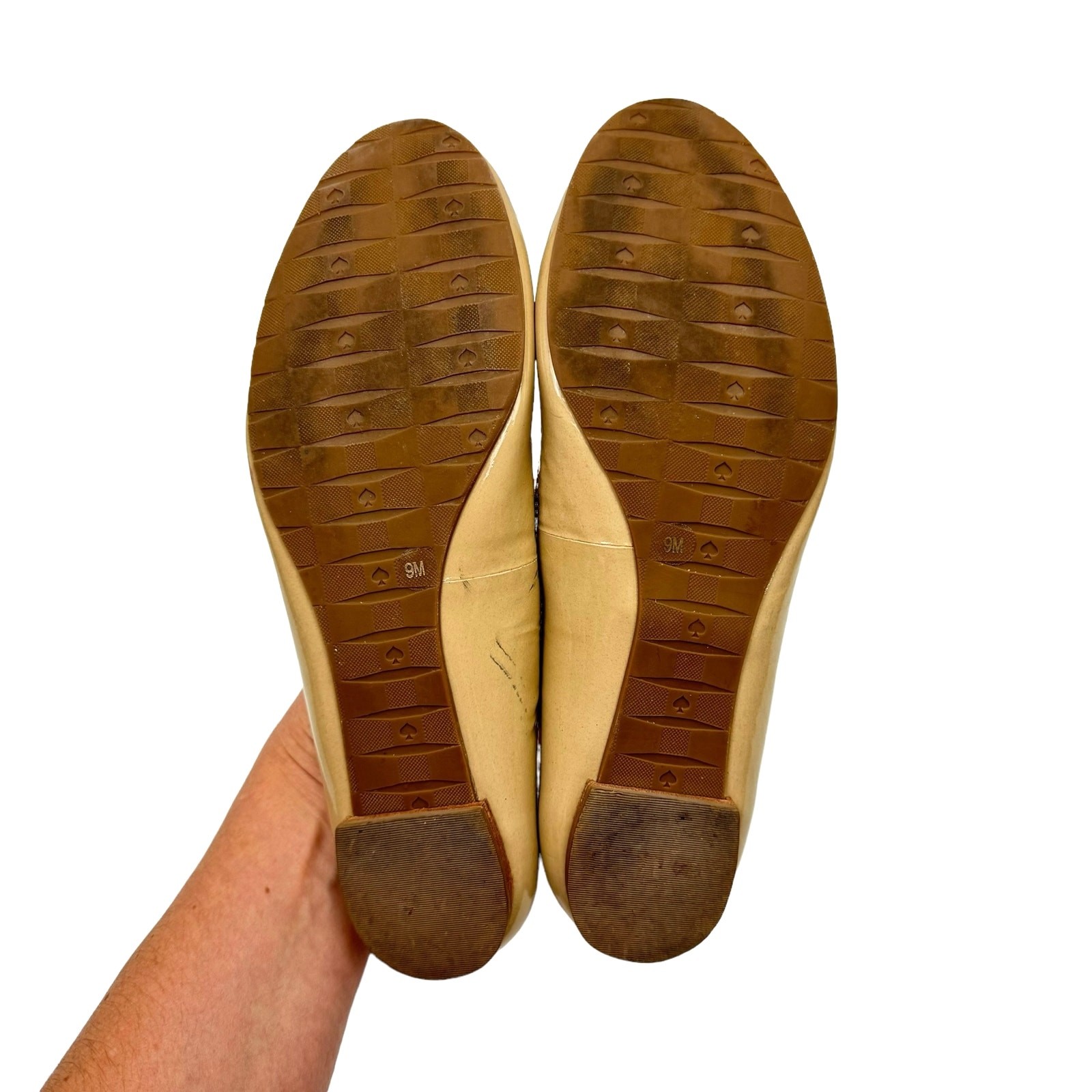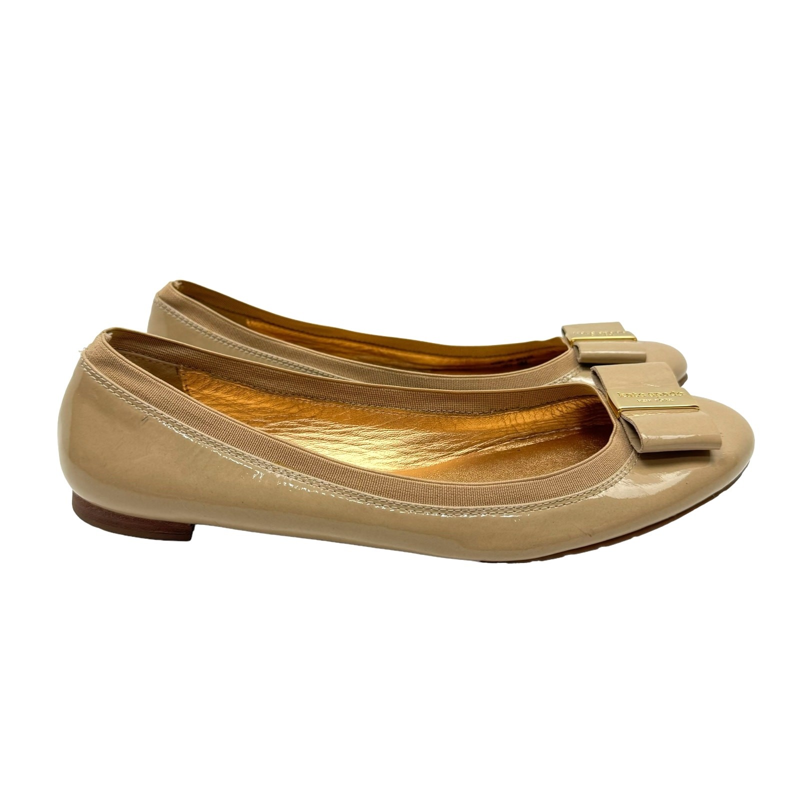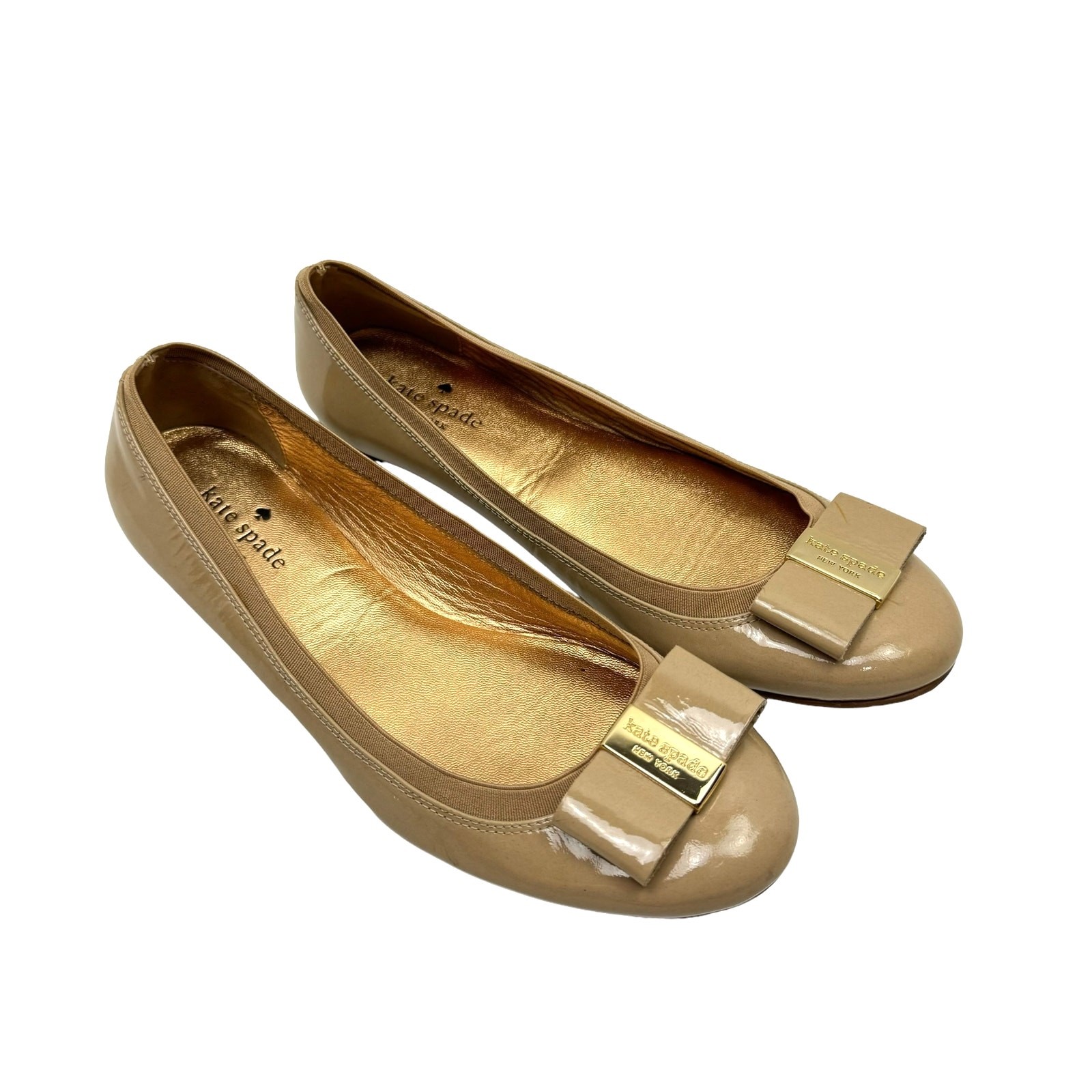 Kate Spade New York 9 Neutral Tan Patent Leather Tock Bow Simple Ballet Flats
