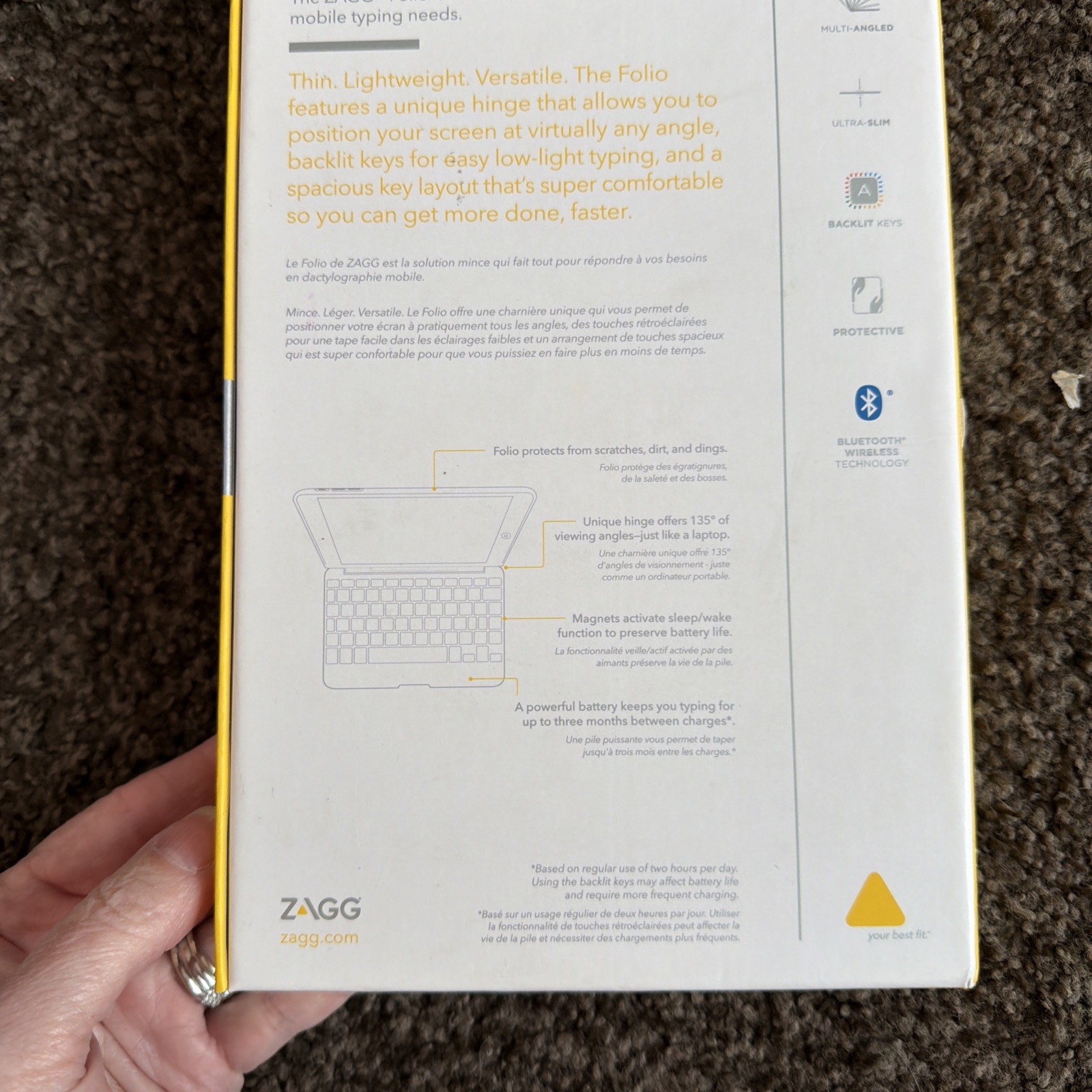 Zagg Folio Case, Backlit Bluetooth Keyboard For Apple IPad Mini IPad Retina