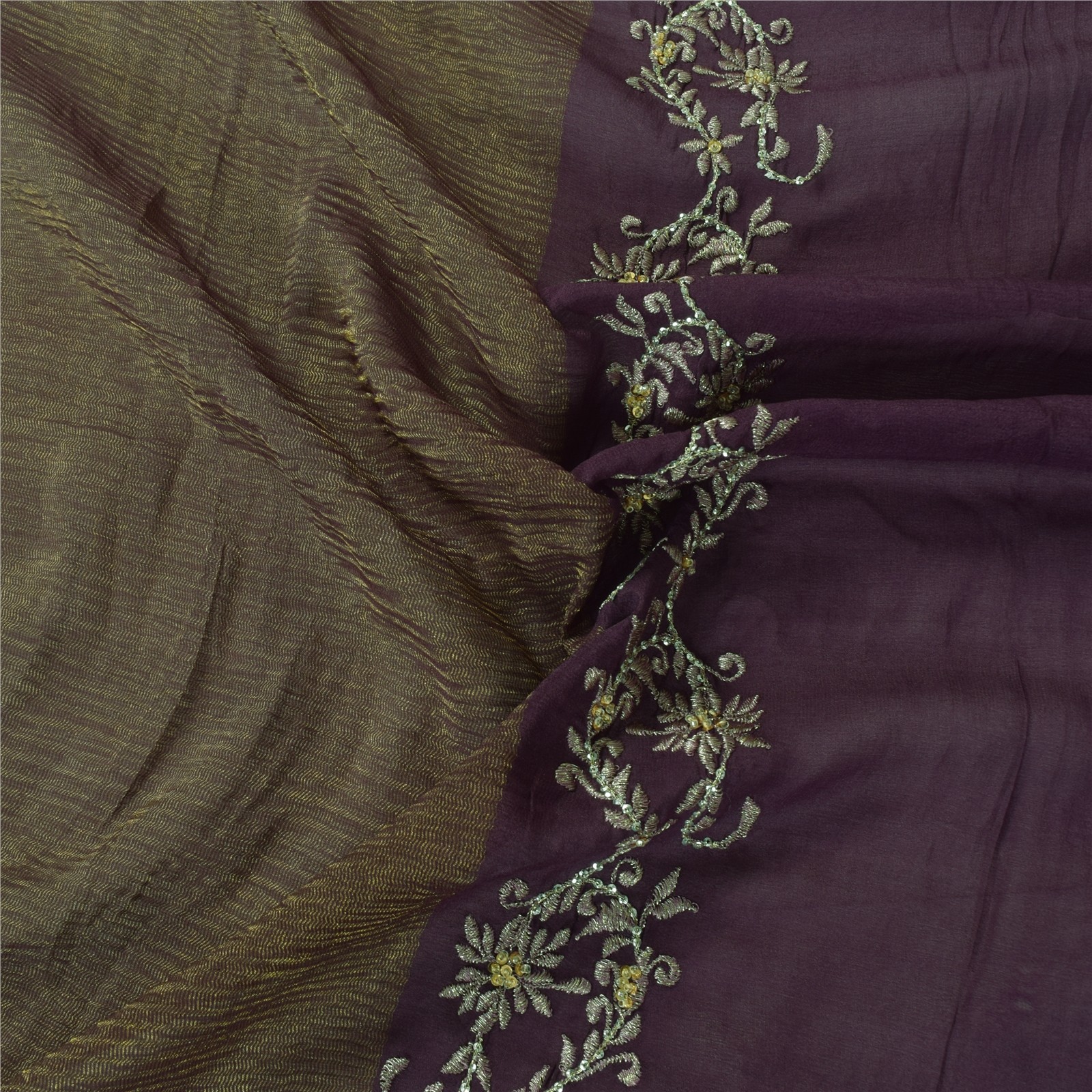 Sanskriti Vintage Burgundy Dupatta Long Stole Pure Silk Hand Beaded Woven Hijab