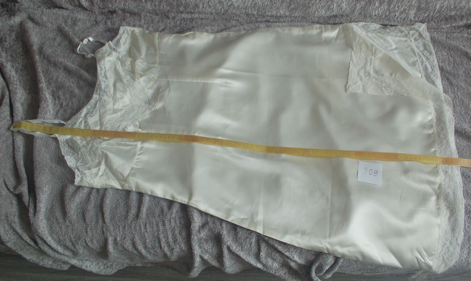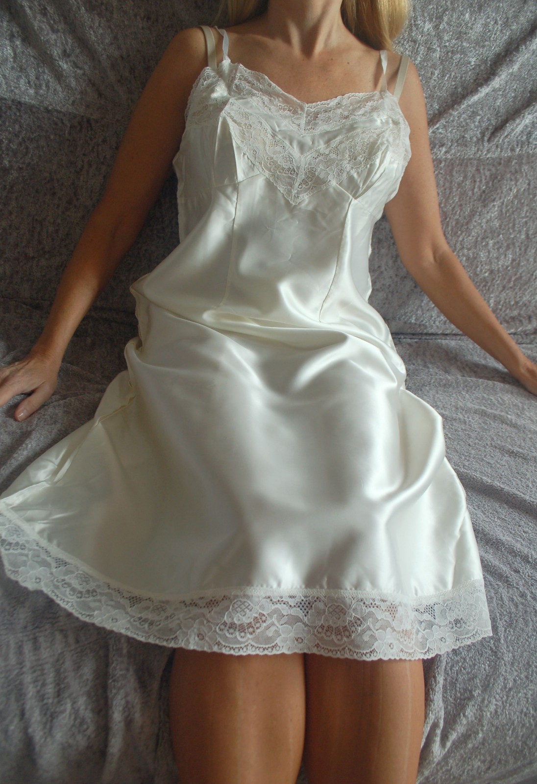 как выглядит NWT VINTAGE STUNNING WHITE FEMME TAFFETA LACE FULL SLIP L 46 фото