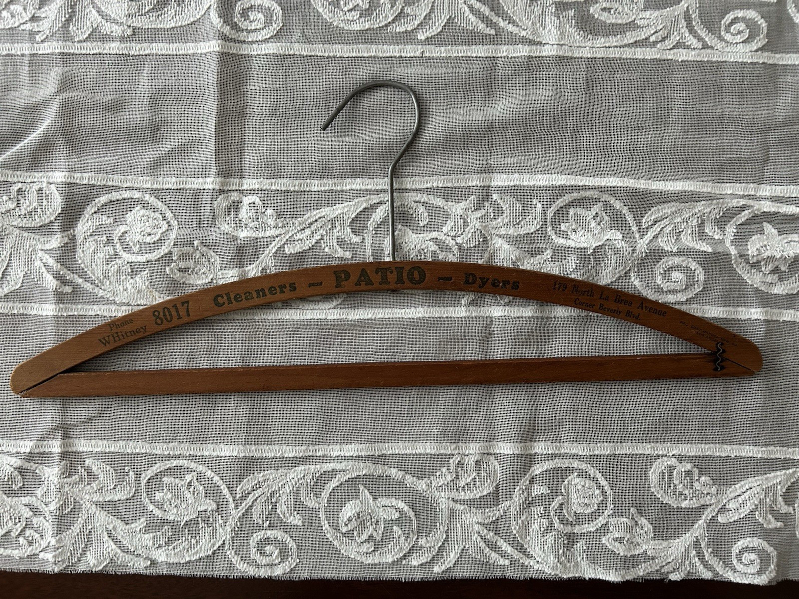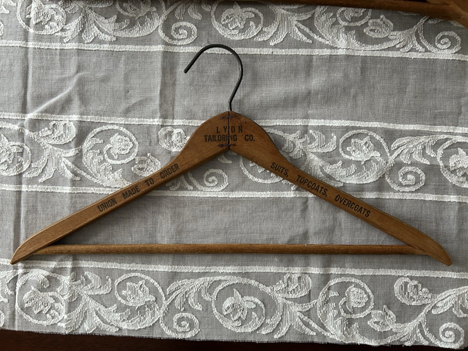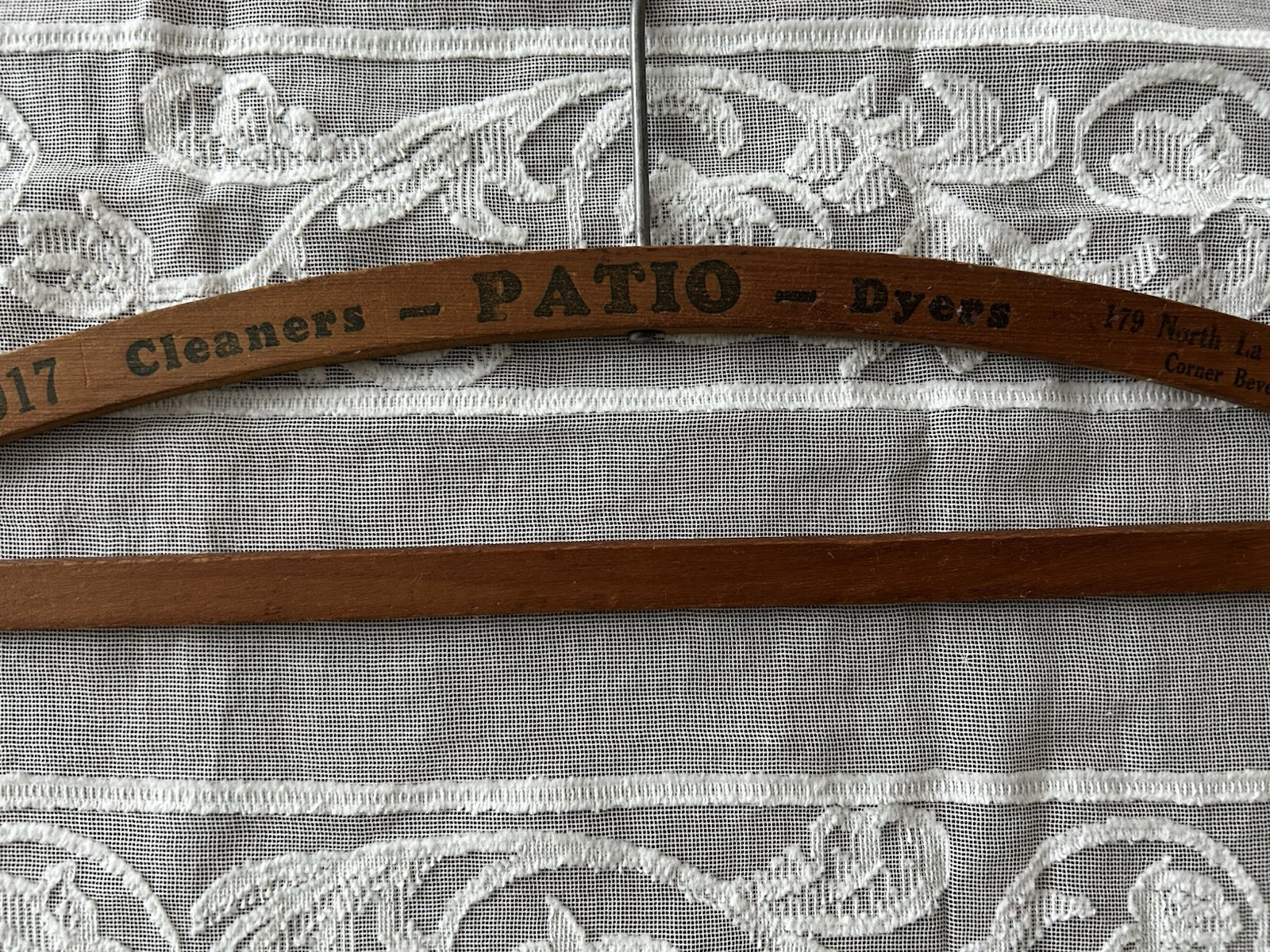 Lot of 5 Vintage Wooden Hangers Advertising Hotel Tailoring Cleaners