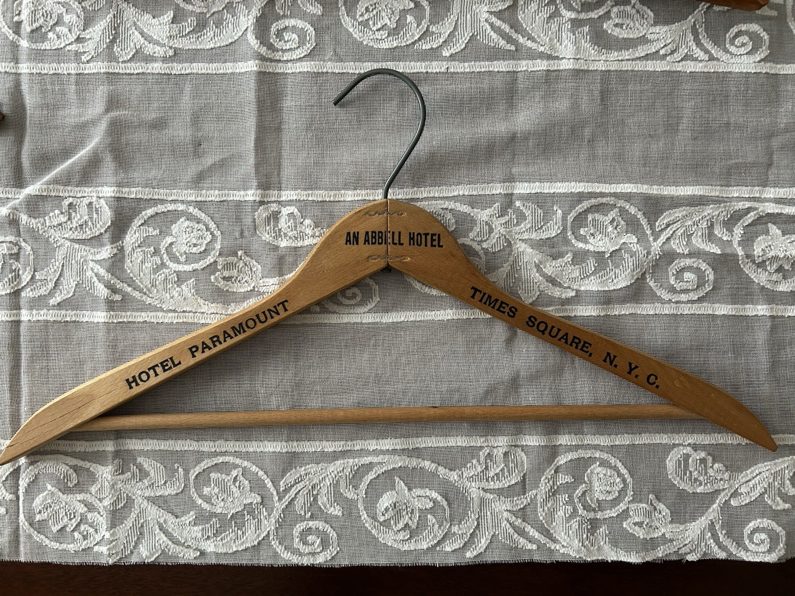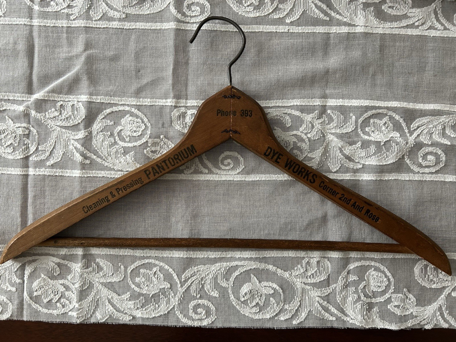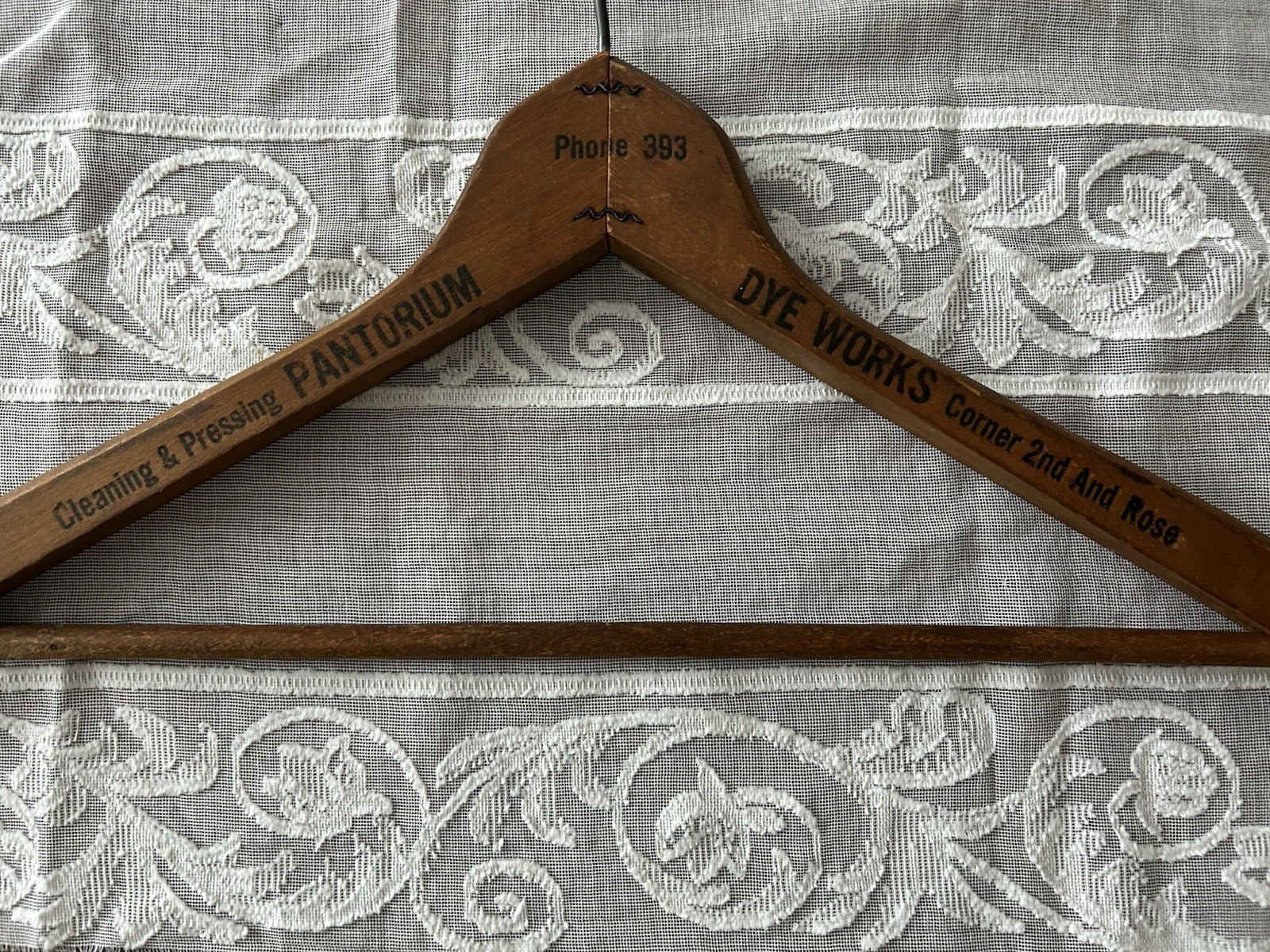 Lot of 5 Vintage Wooden Hangers Advertising Hotel Tailoring Cleaners