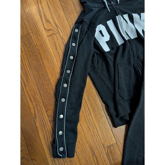 как выглядит Victorias Secret PINK Black 2 piece Full Zip Hoodie Sweatshirt Joggers Sz Large фото