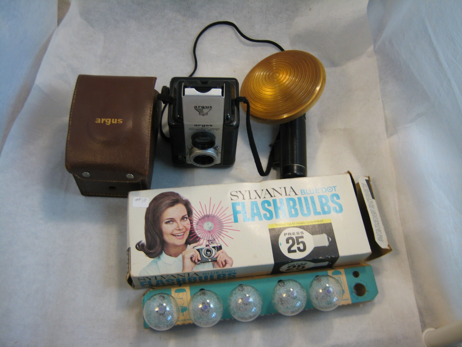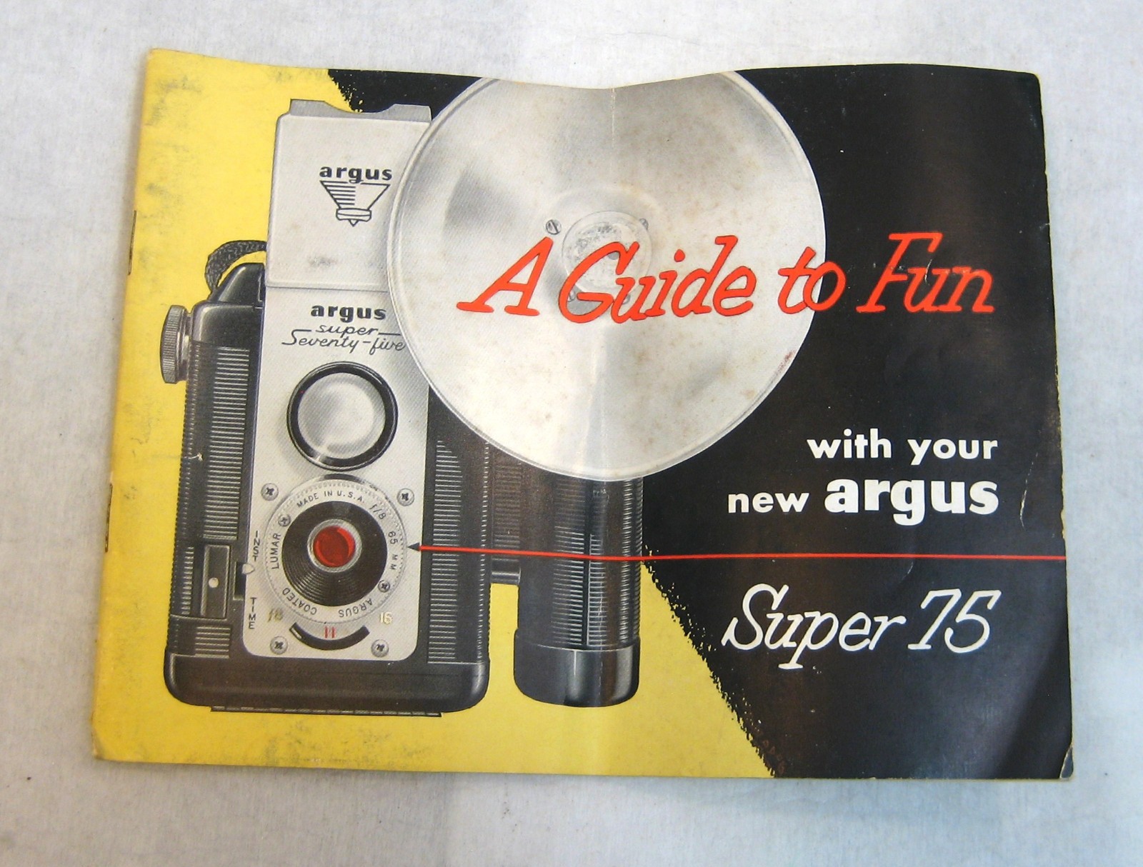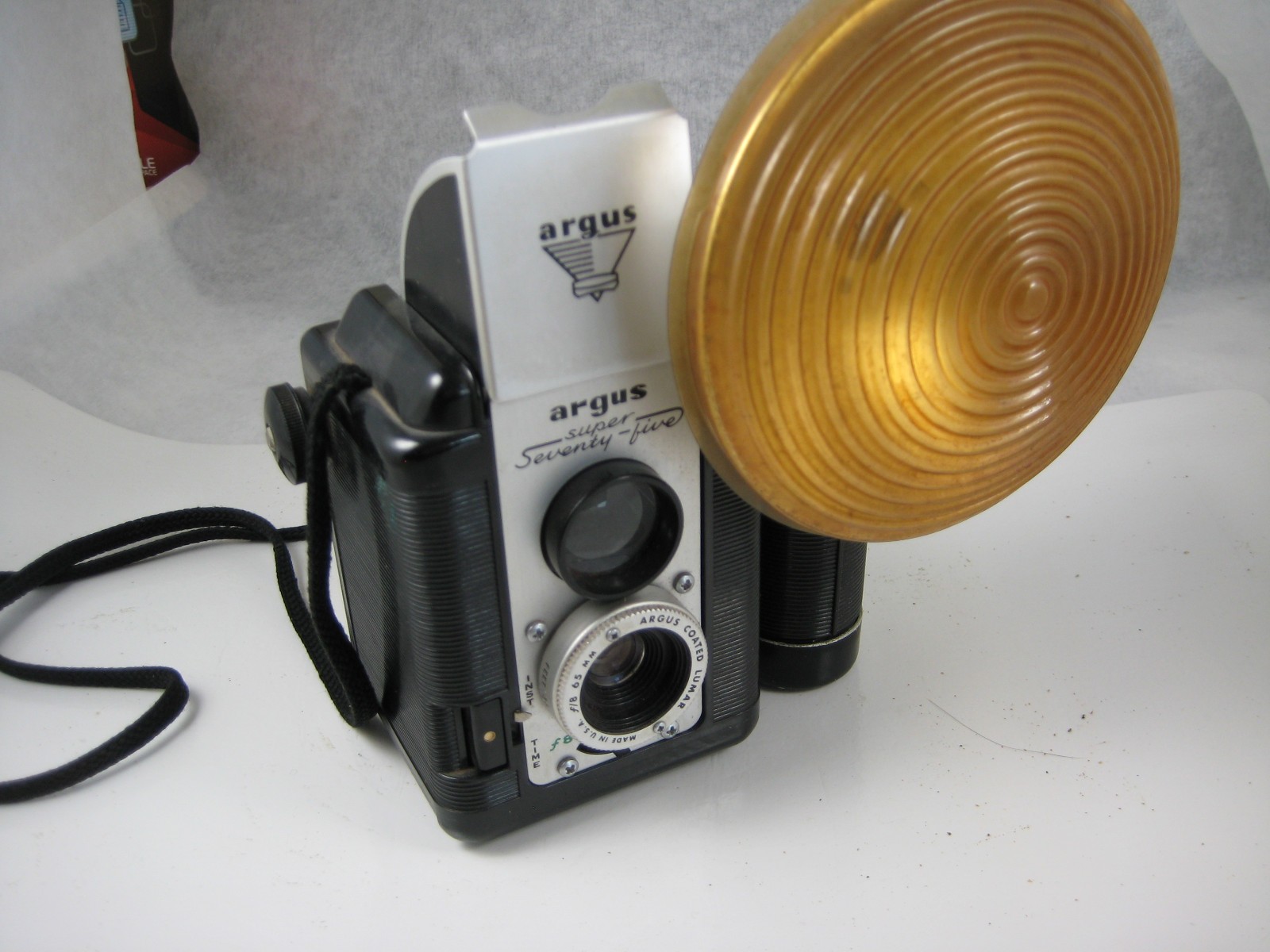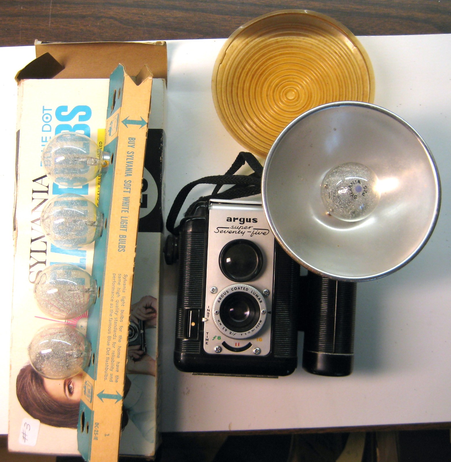 Vintage Argus Super Seventy-five Reflex Box Camera, Flash, bulbs, manual, cases