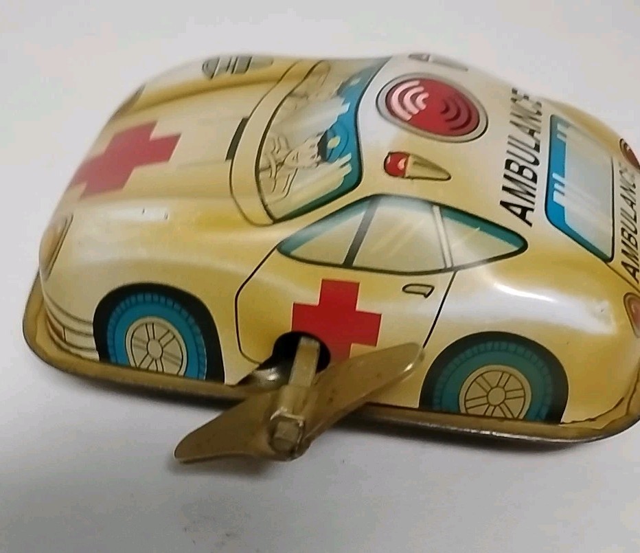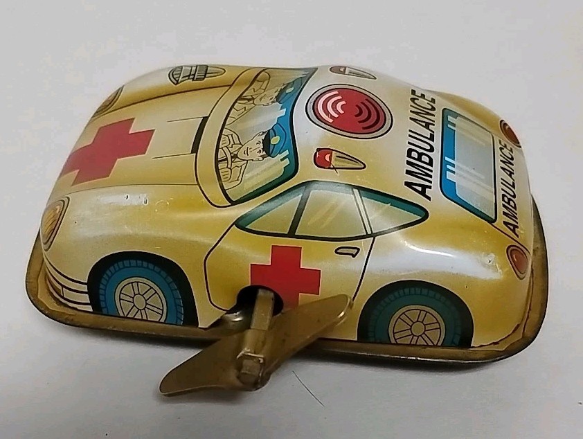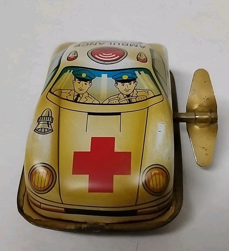Vintage Tin Lithograph Wind Up Ambulance Made in Japan Working