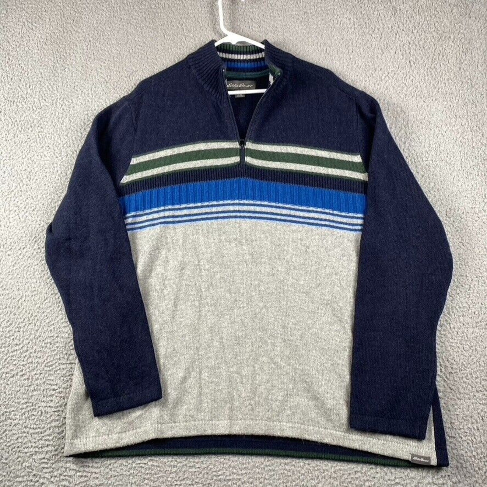 как выглядит Eddie Bauer 1/4 Zip Pullover Sweater Mens XL Striped Wool Arcylic Nylon Blend фото