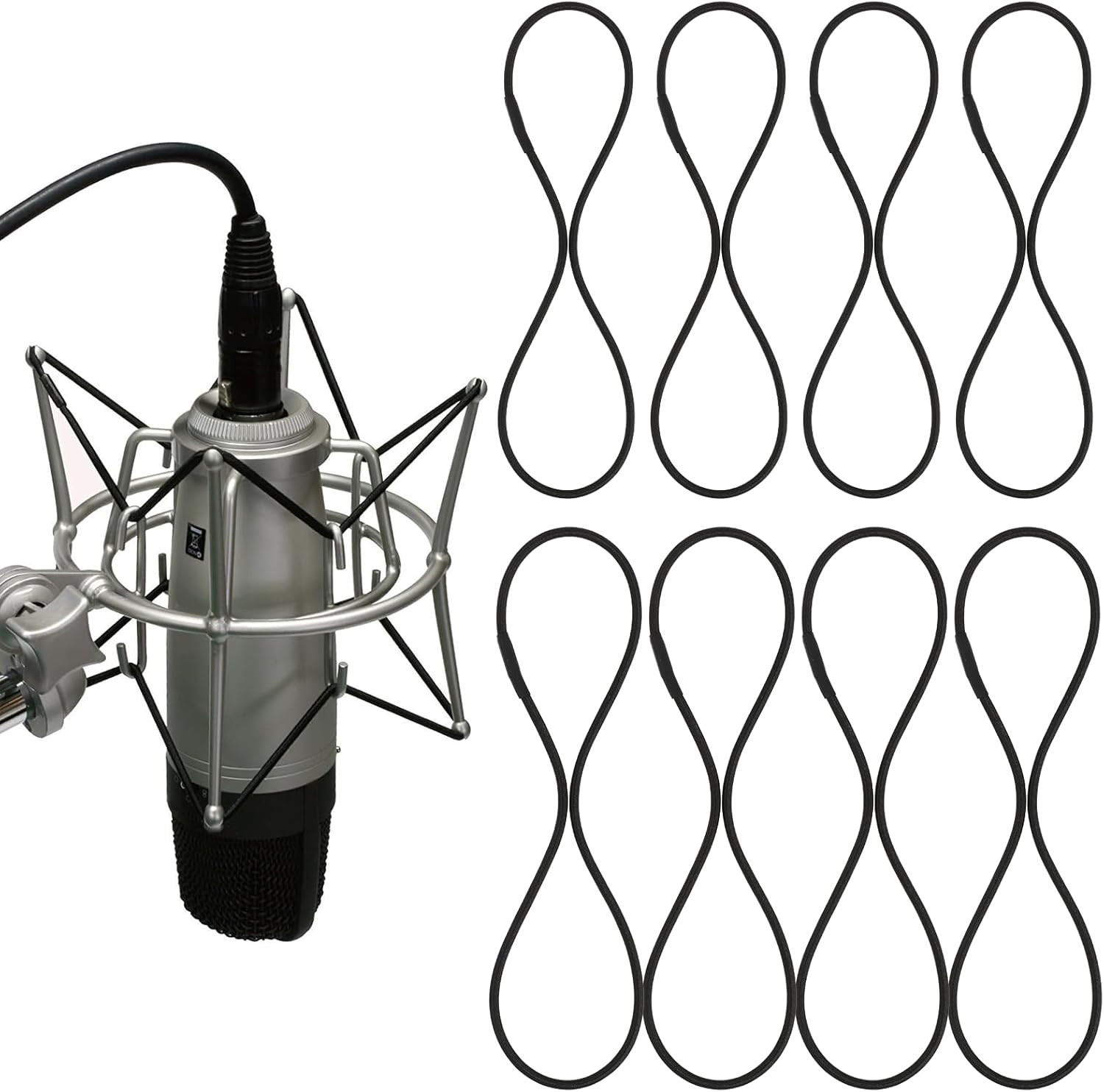 8PCS Microphone Shock Mount Rubber Ring, Black Universal Elastic Bands