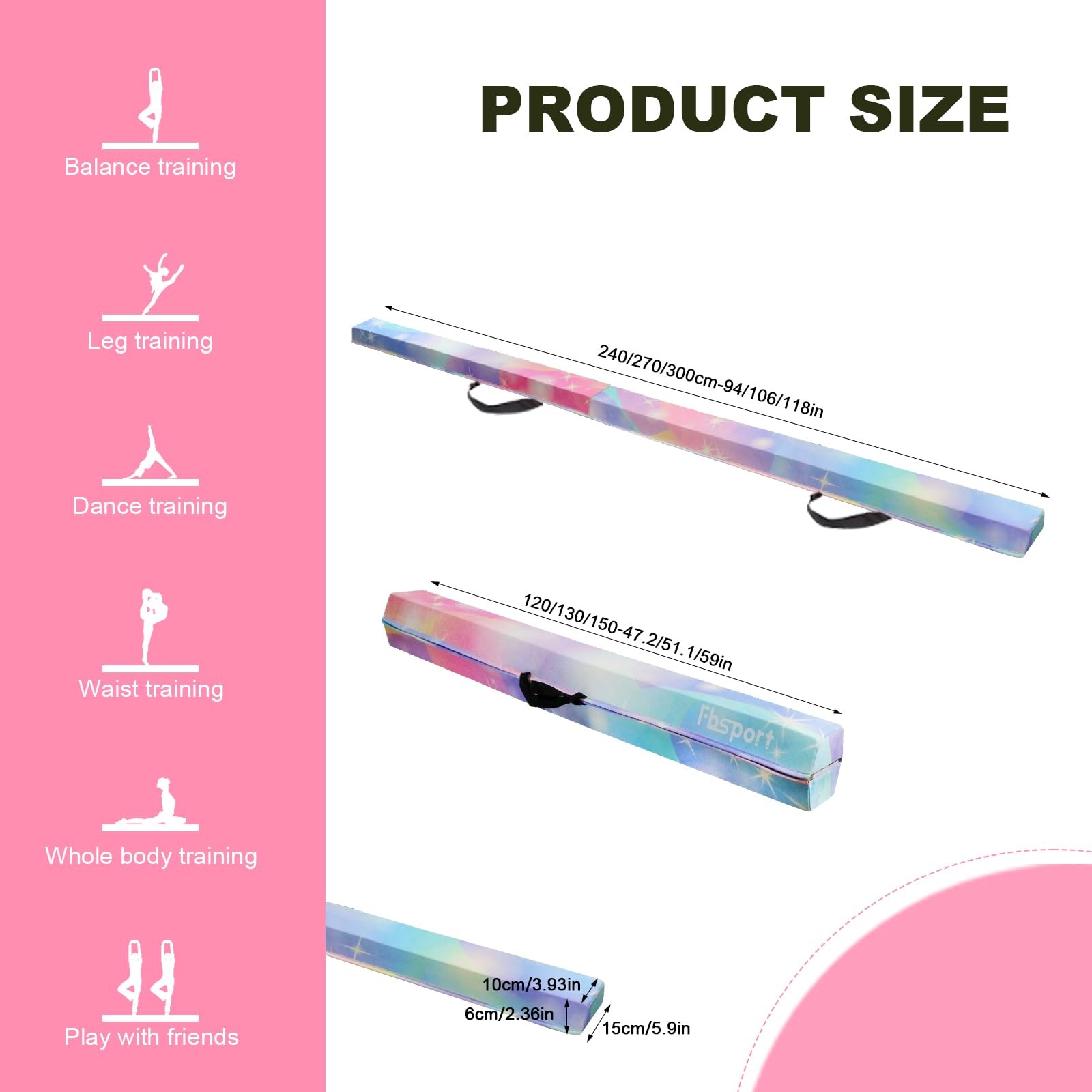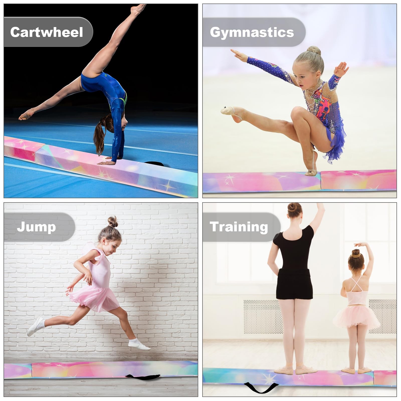 8ft Balance Beam Folding Gymnastics Beam Foam Balance Floor Beam Equipment fo...