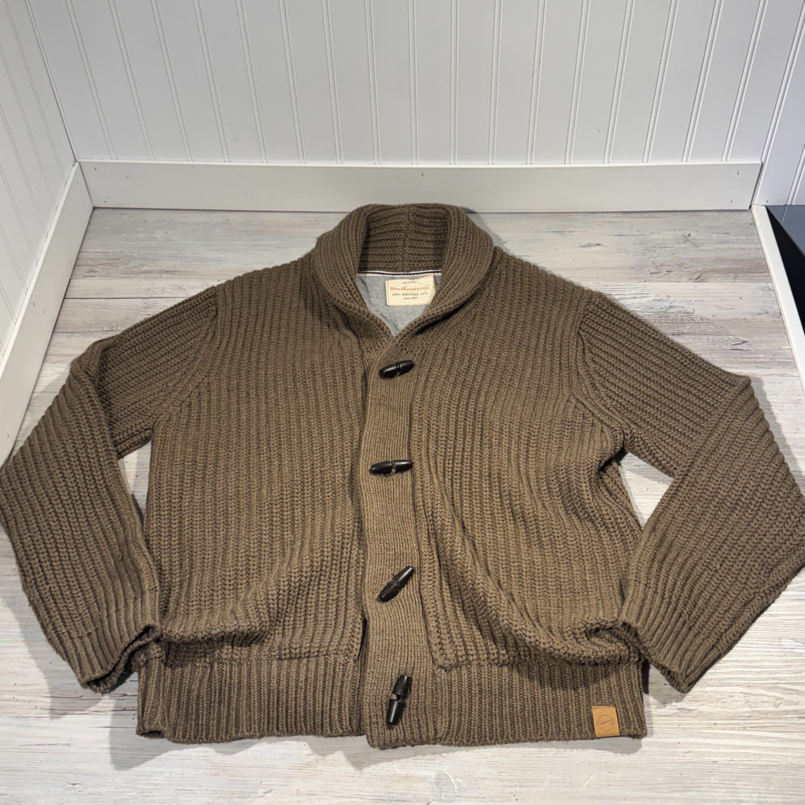 Original Weatherproof Vintage Toggle Sweater, 100 Acrylic, Men's Sz M, Brown