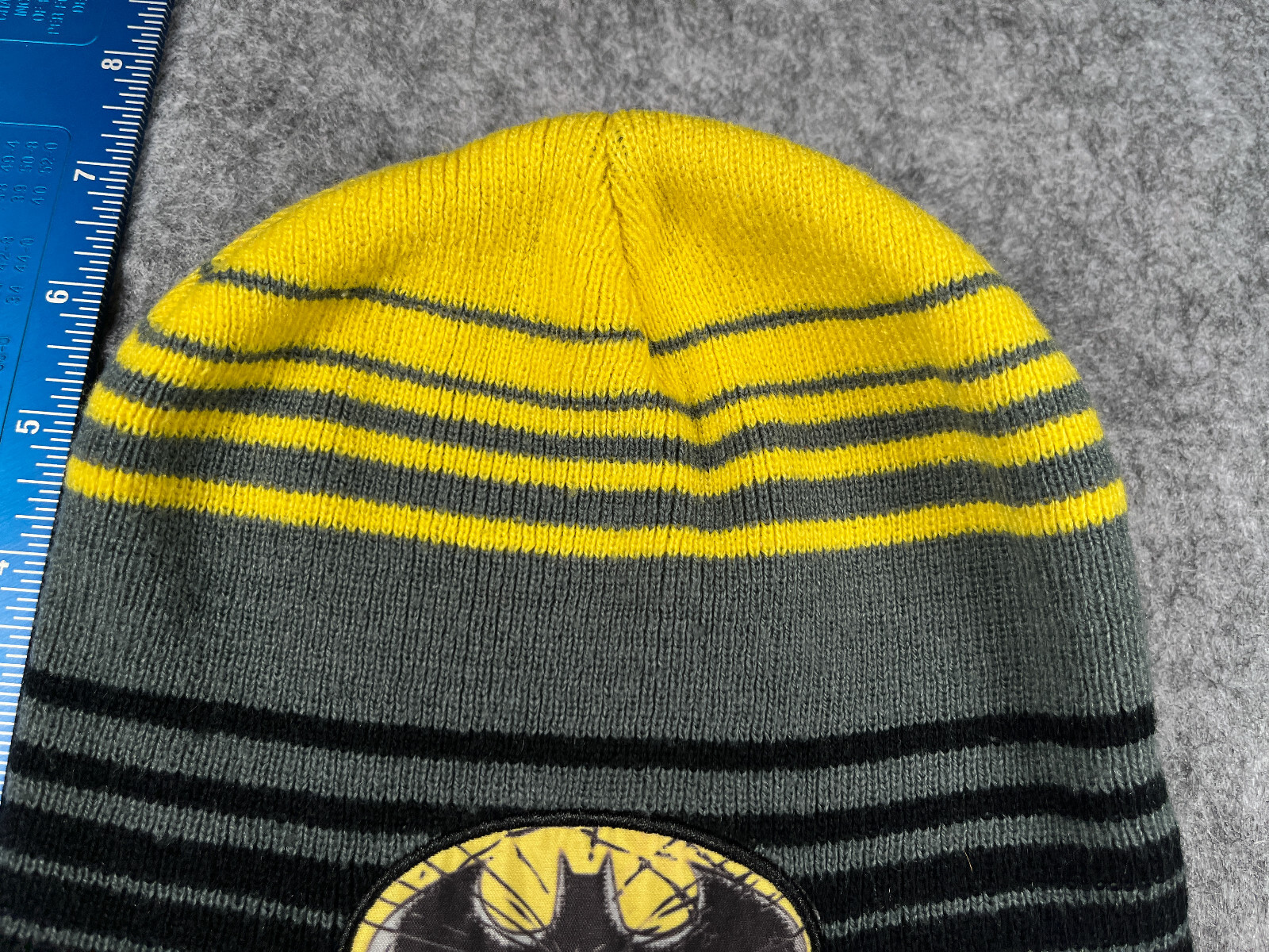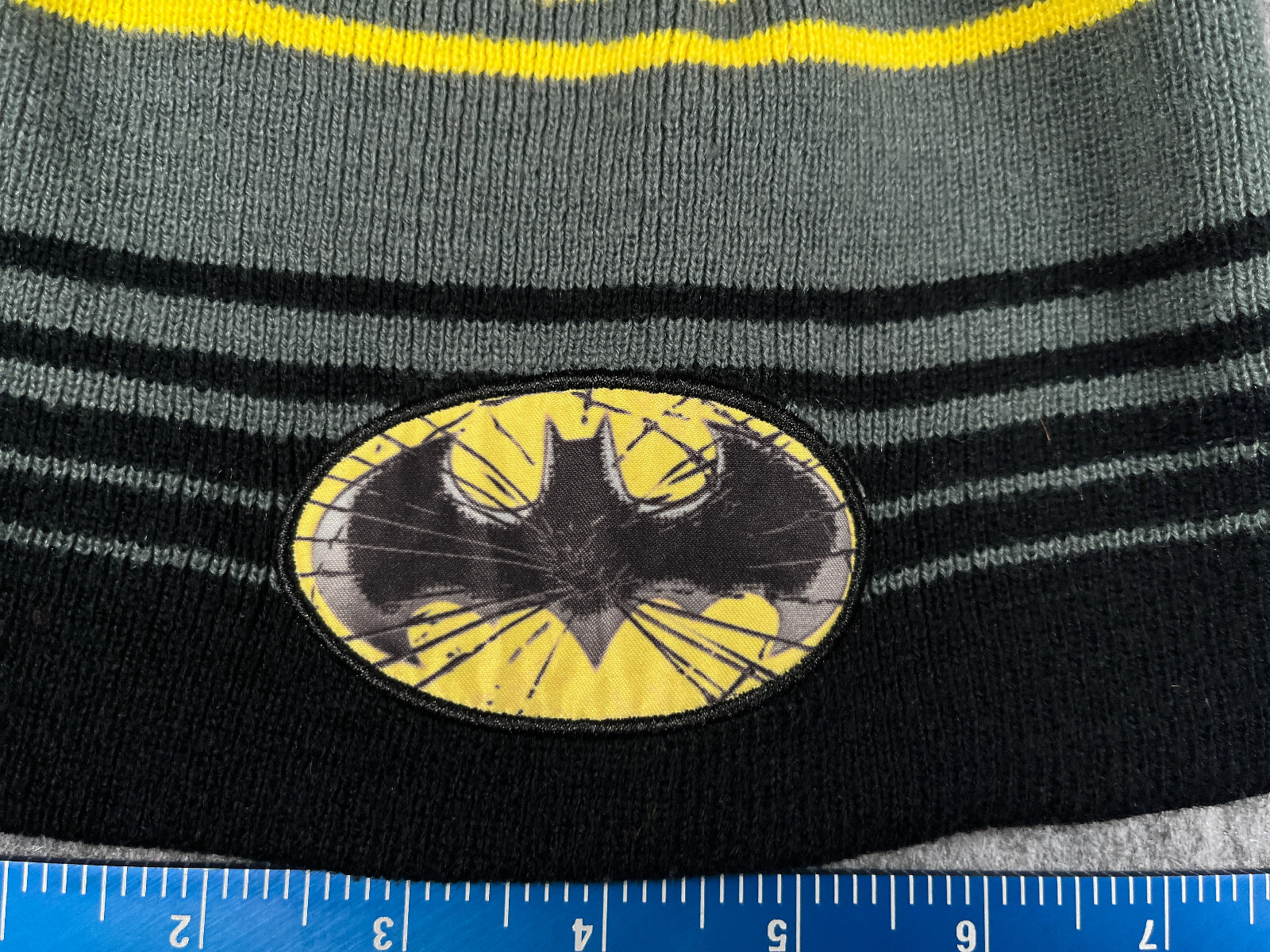 как выглядит Batman Beanie Toque Youth One Size Black Gray Yellow Stripe Knit Acrylic Ski фото