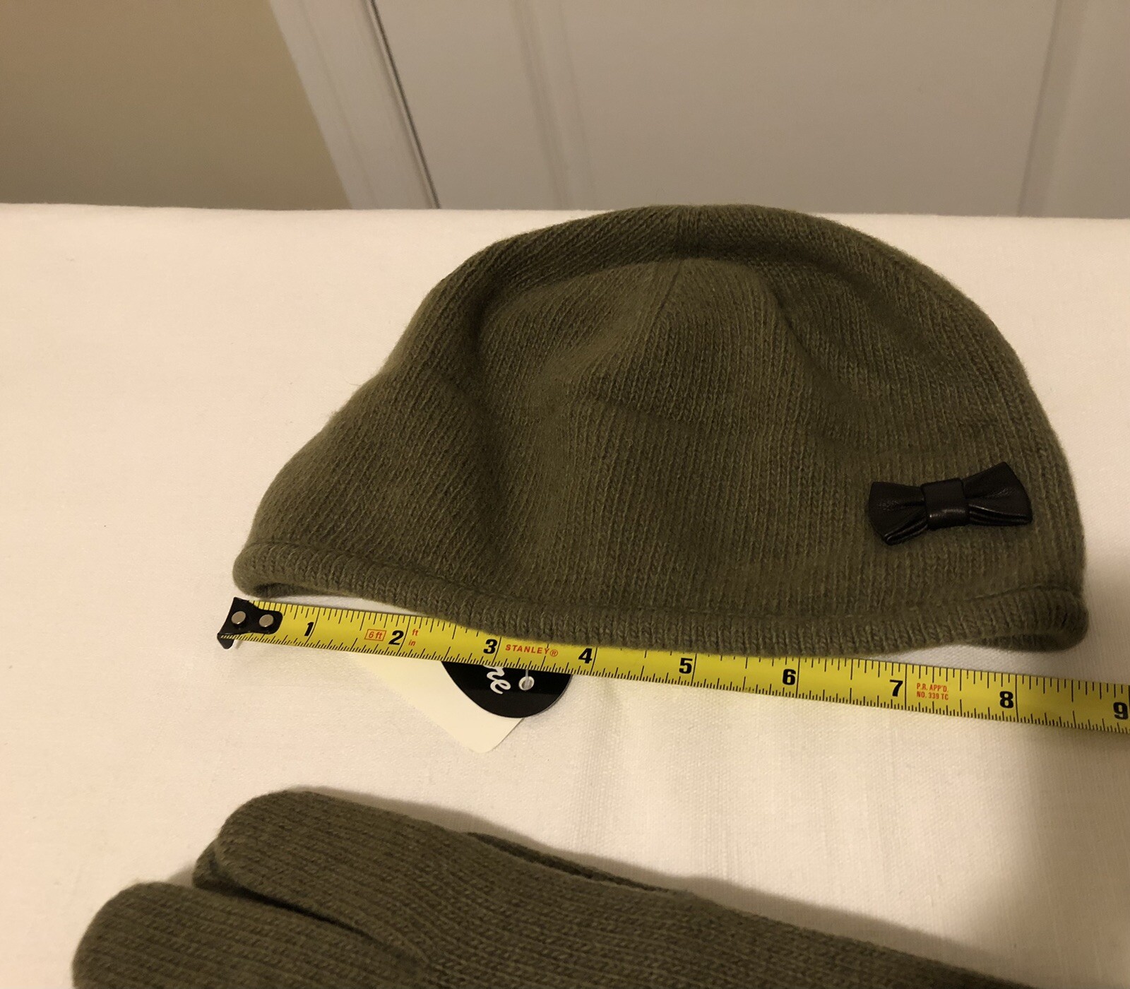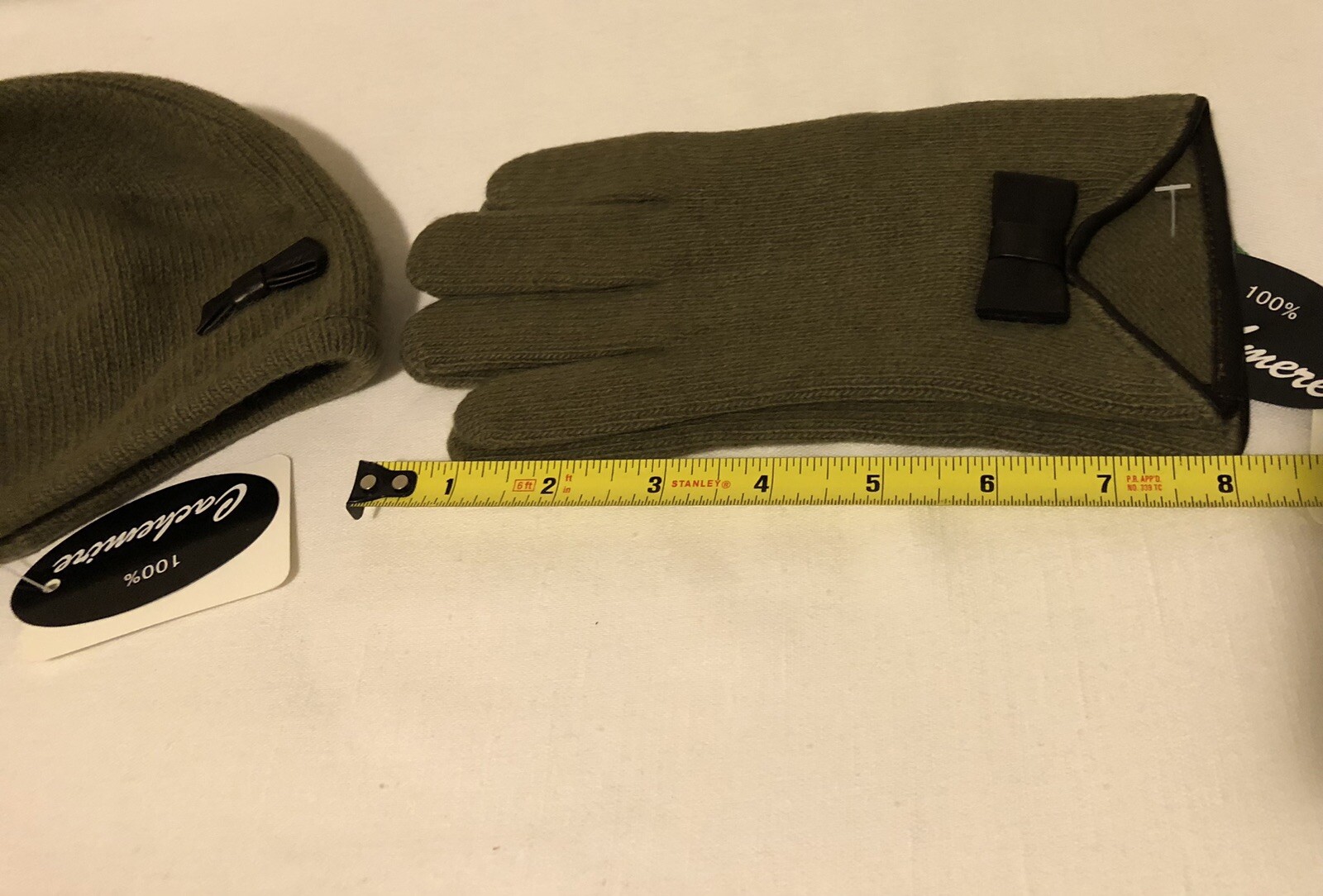 как выглядит NWT PORTOLANO 100 Cashmere Olive Green Beanie and Gloves set One Size фото