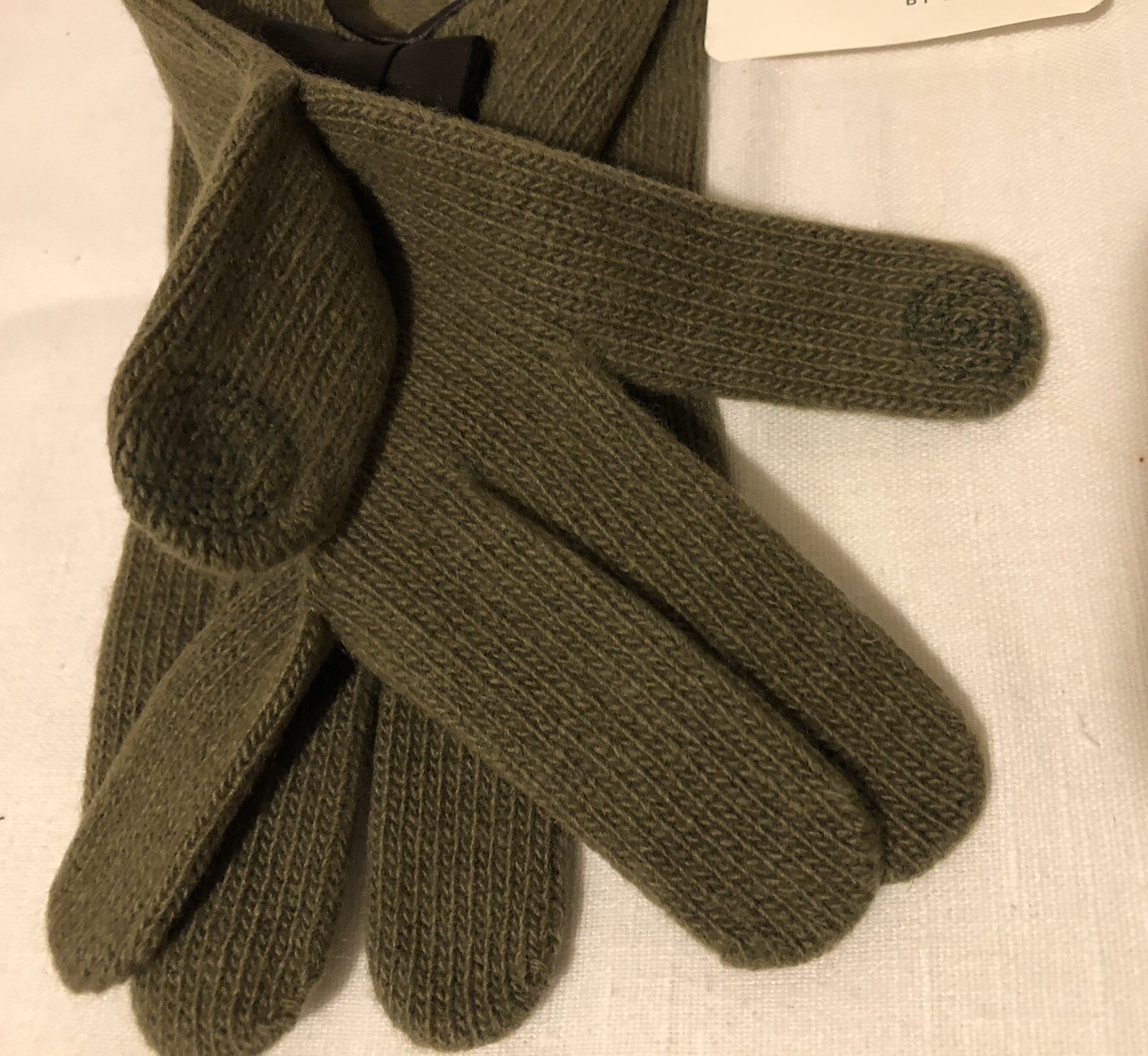 NWT PORTOLANO 100 Cashmere Olive Green Beanie and Gloves set One Size