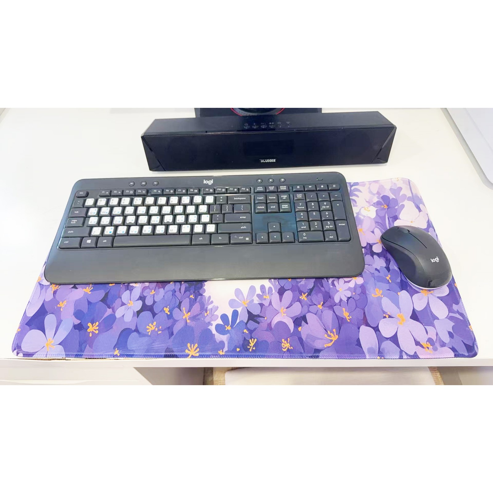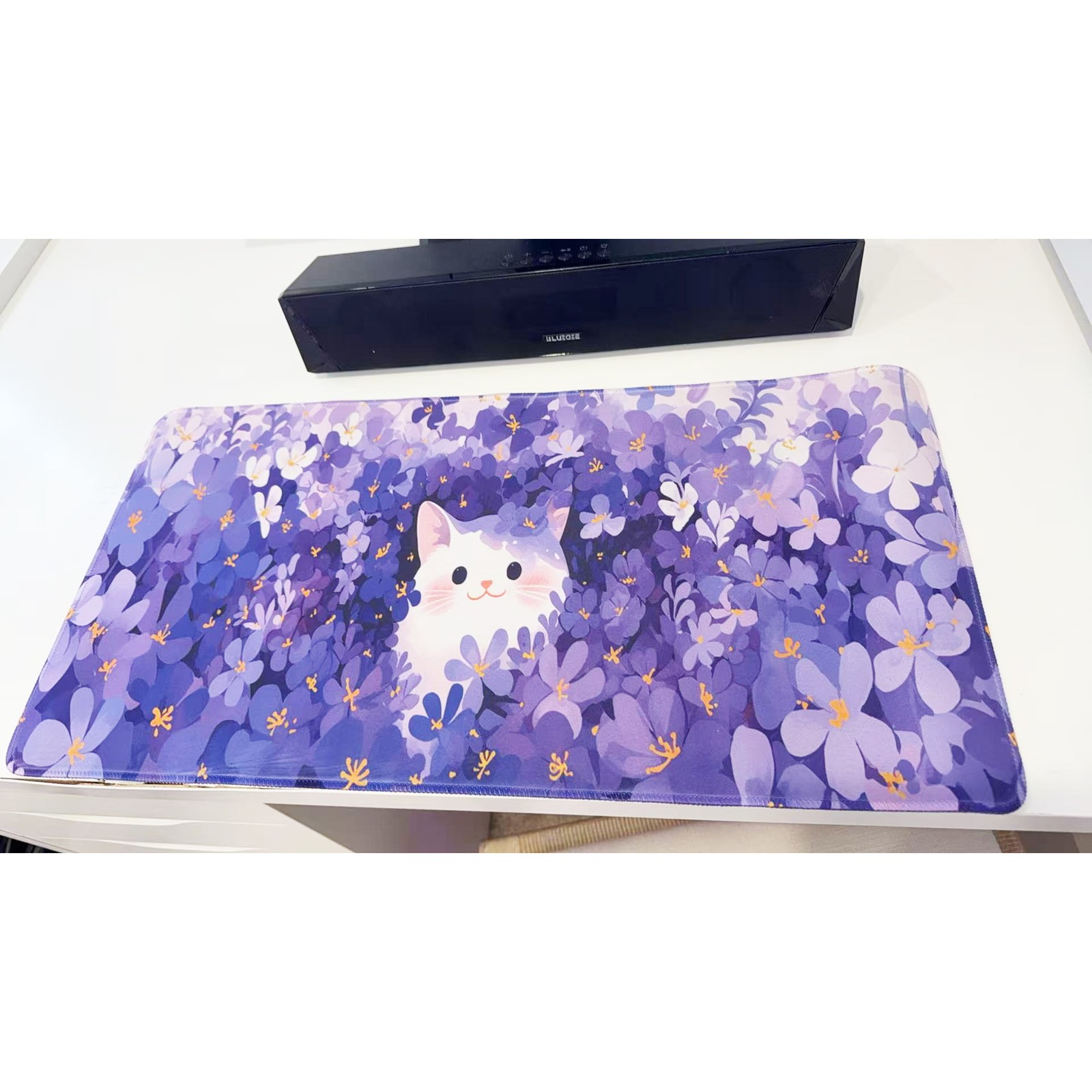 Purple Floral Cat Large Gaming Mouse Pad 23.6x11.5 Non-Slip Desk Keyboard Mat