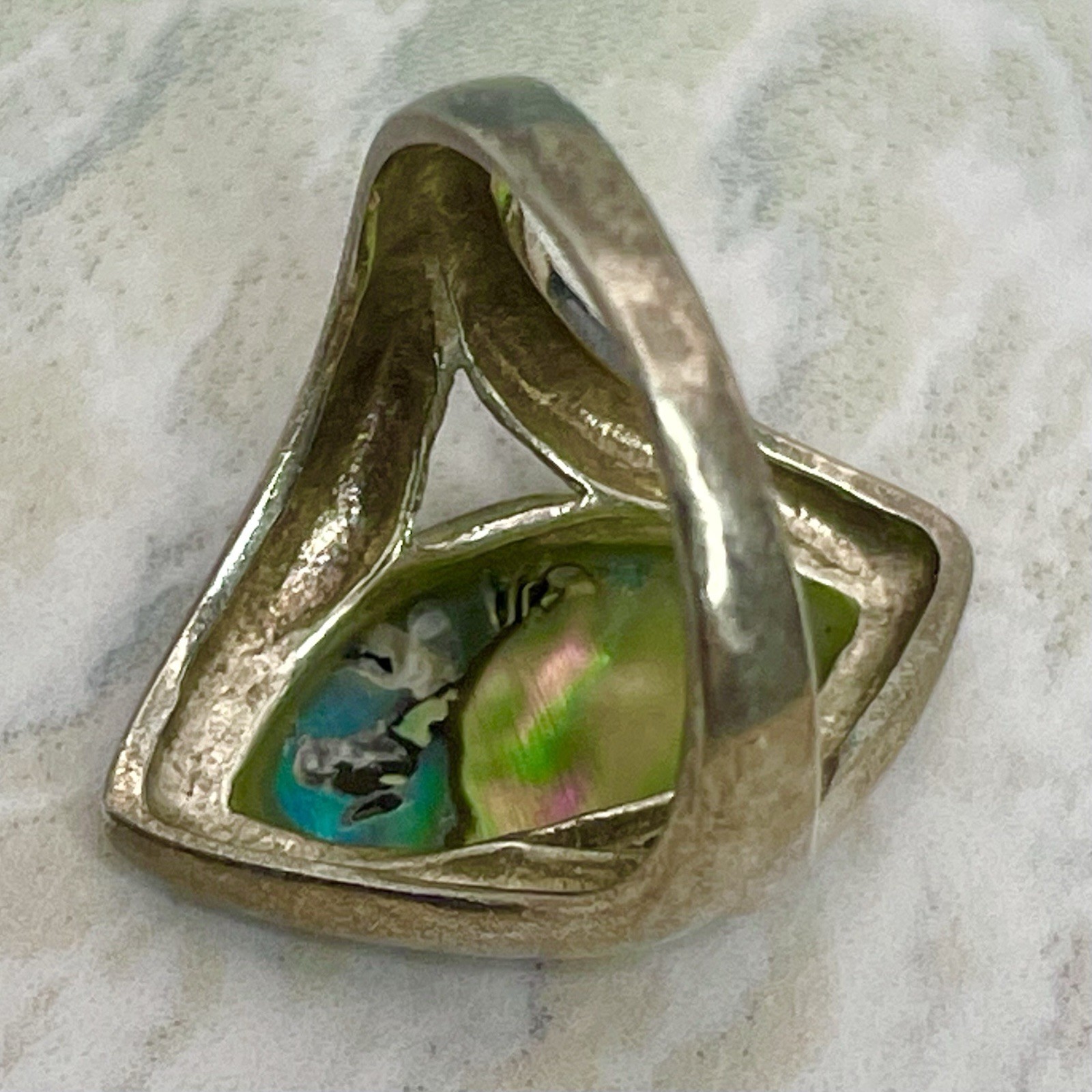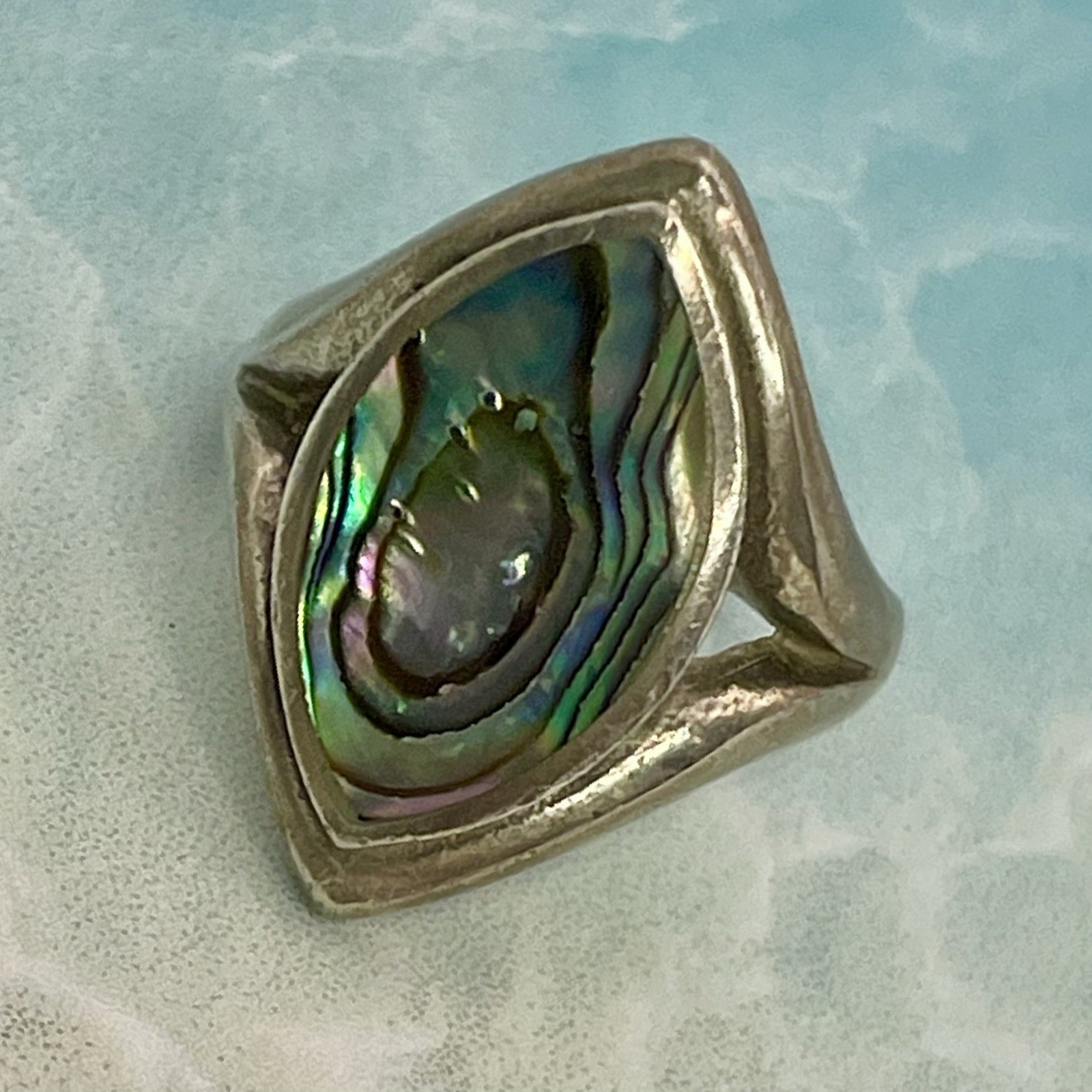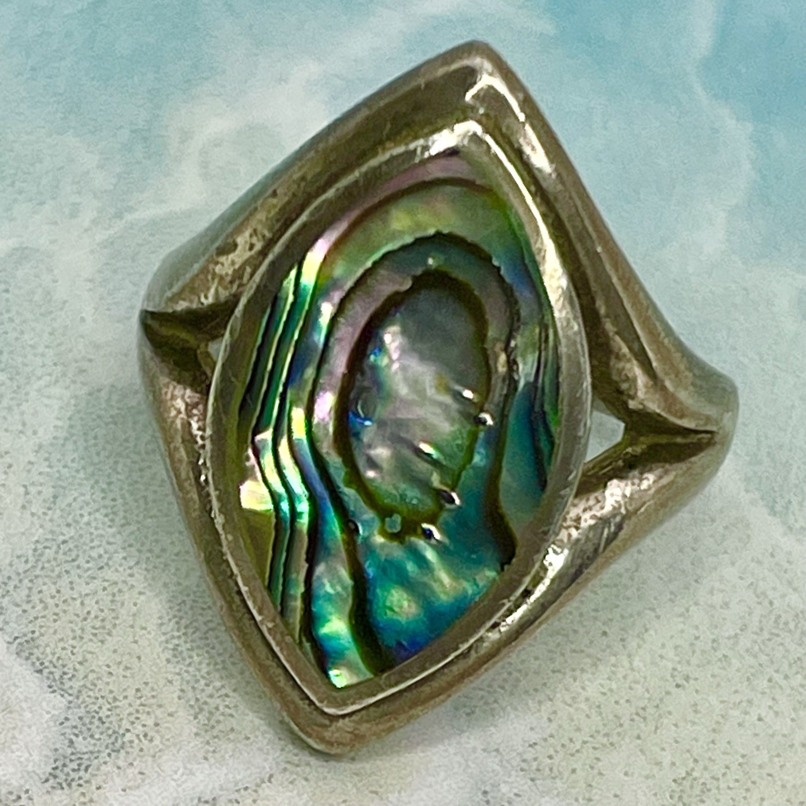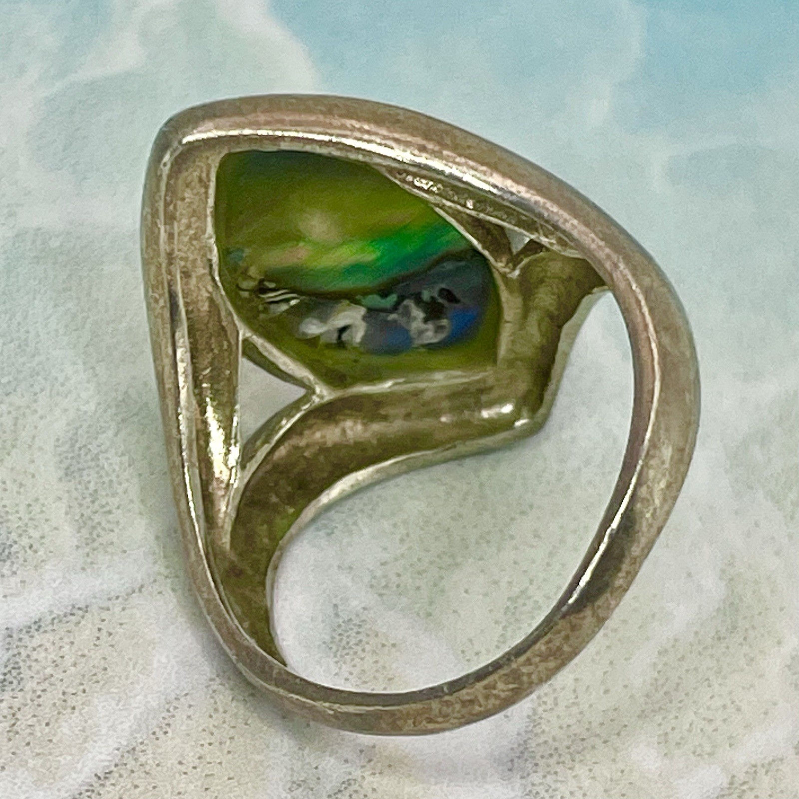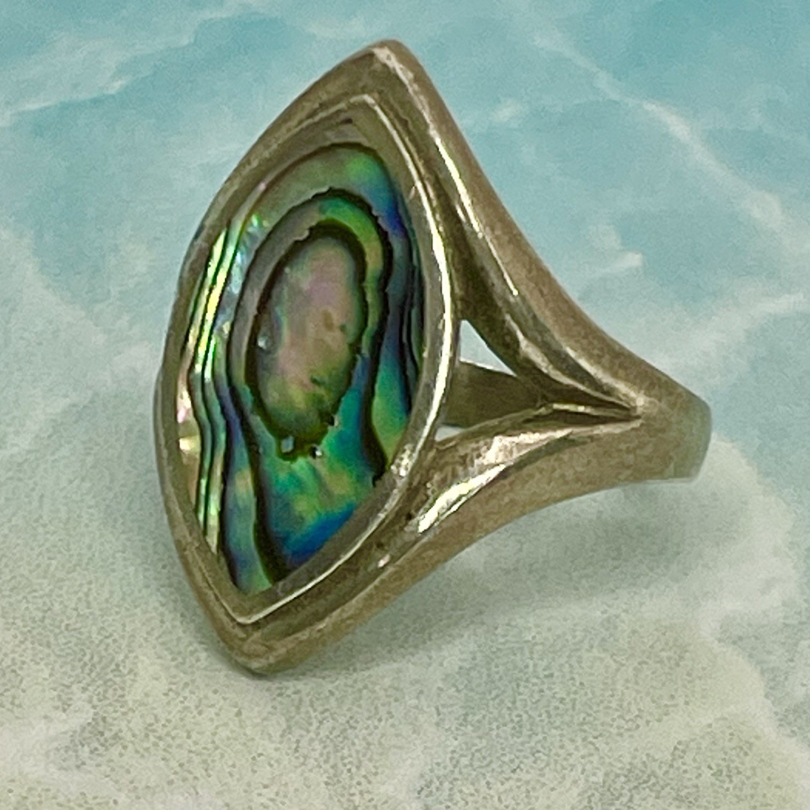 VTG Marquise Abalone Sterling Silver 925 Ring 3.19g Sz 5 Stone: 20 mm H, 18 mm W