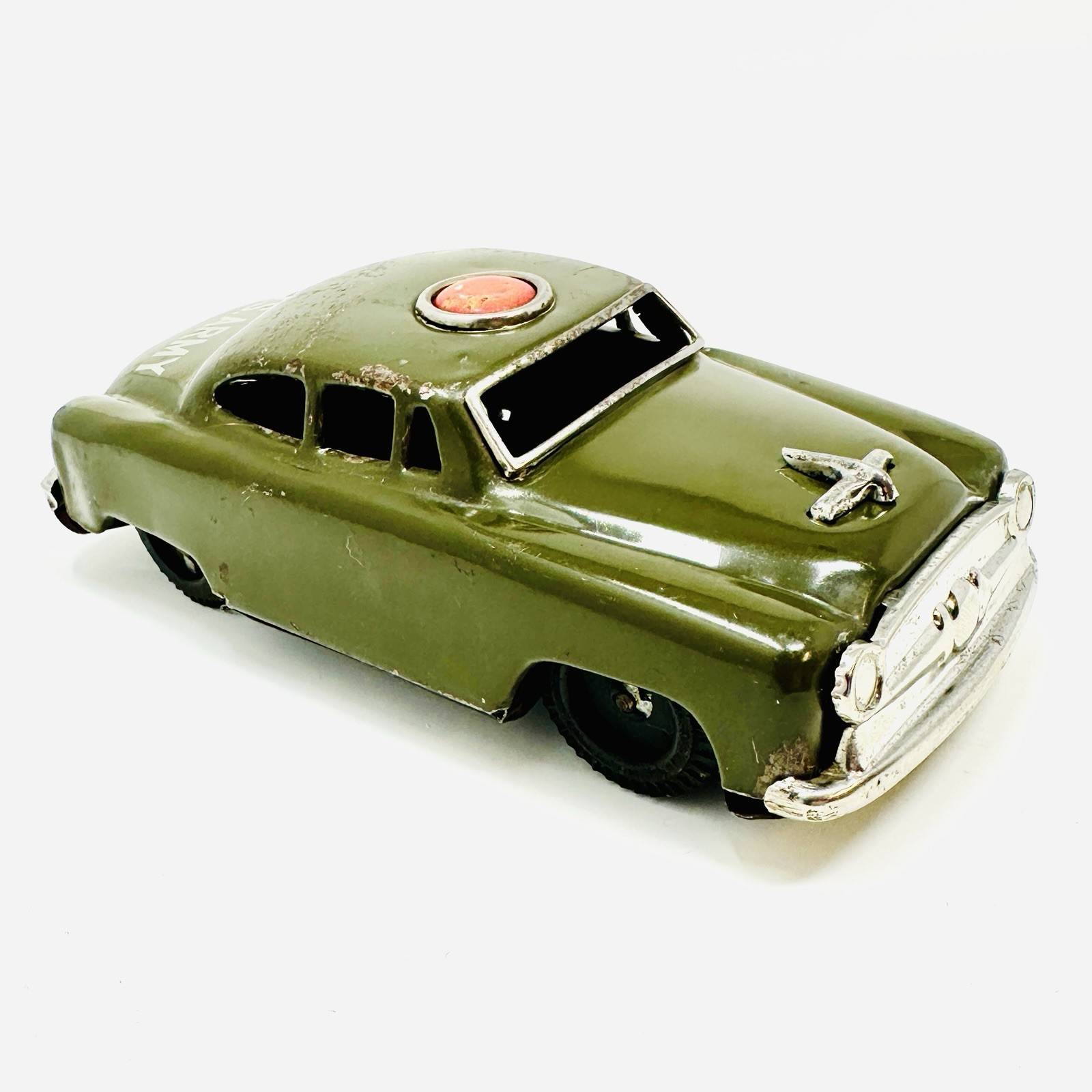 Tin U.S. Army Military Police MP Car Sedan Friction Toy - Very Clean - 5 long