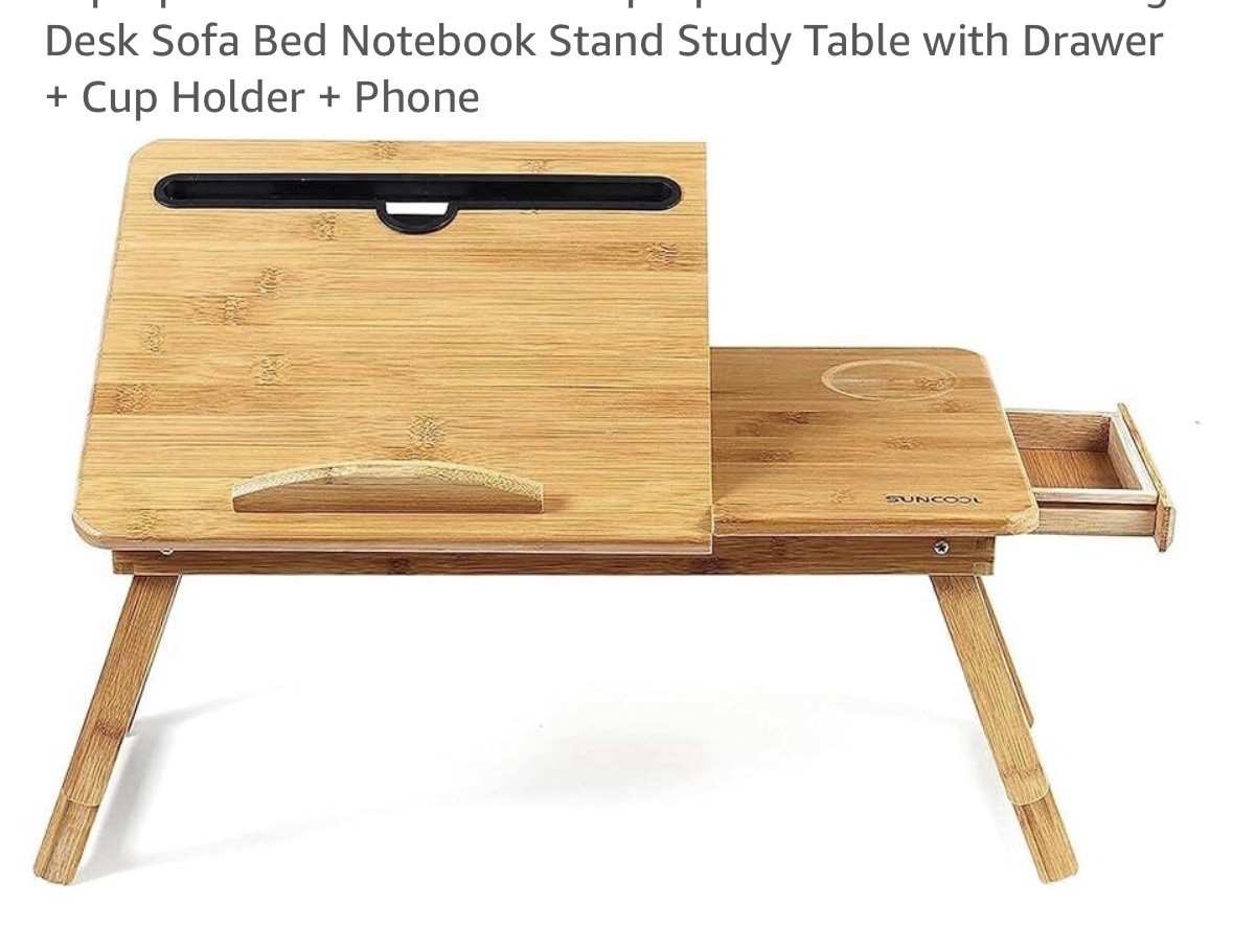 SUNCOOL Bamboo Lap Desk Adjustable Stand Drawer Cup Holder Foldable Brown
