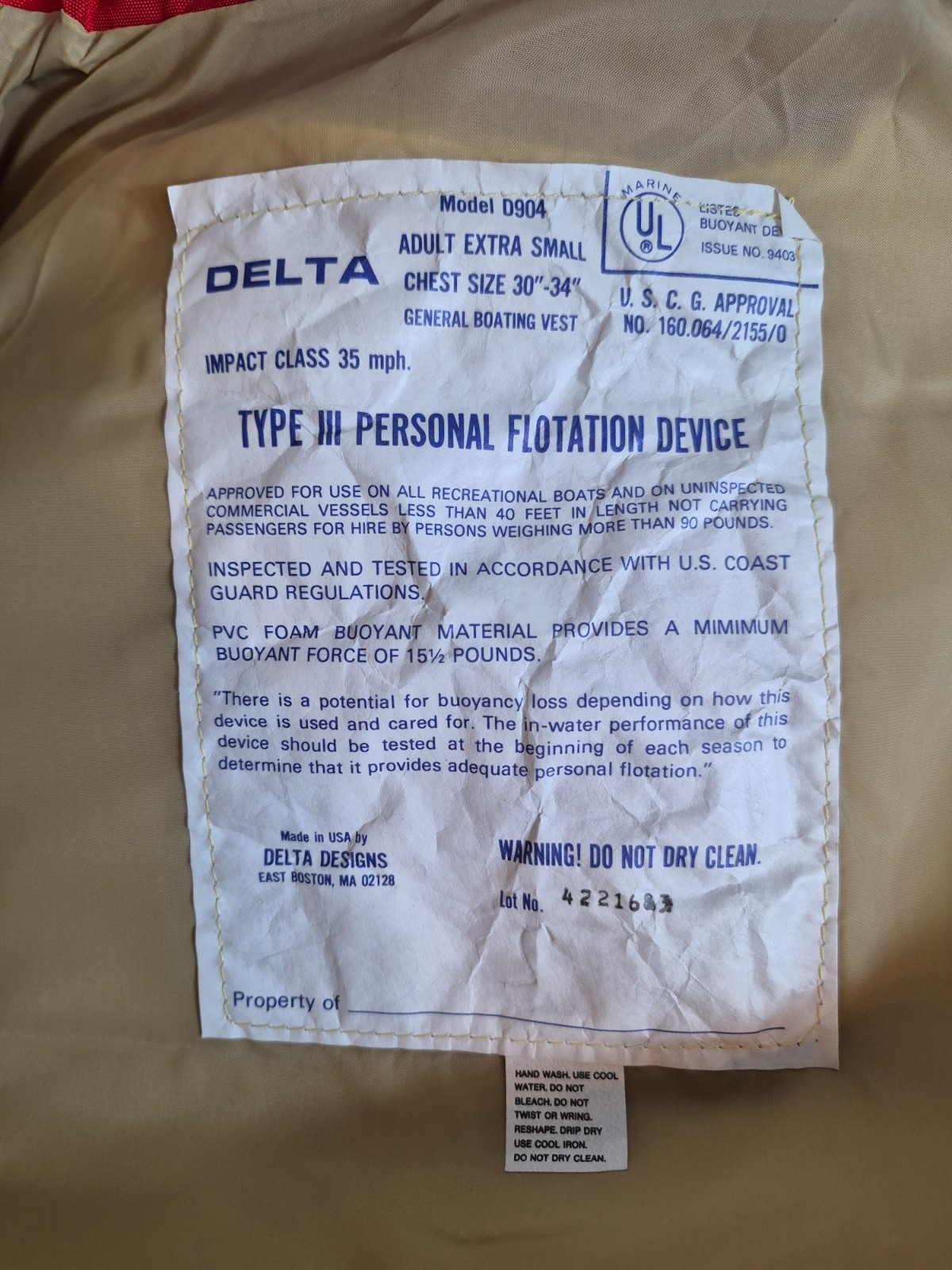 как выглядит Sea Gear by Delta Adult XS Red Flotation Lifejacket Boating Vest NEW NEVER USED фото