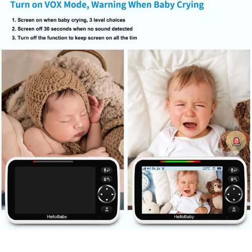 HelloBaby No WiFi Baby Monitor 5 Screen 30-Hour Battery Pan-Tilt-Zoom Video Upg