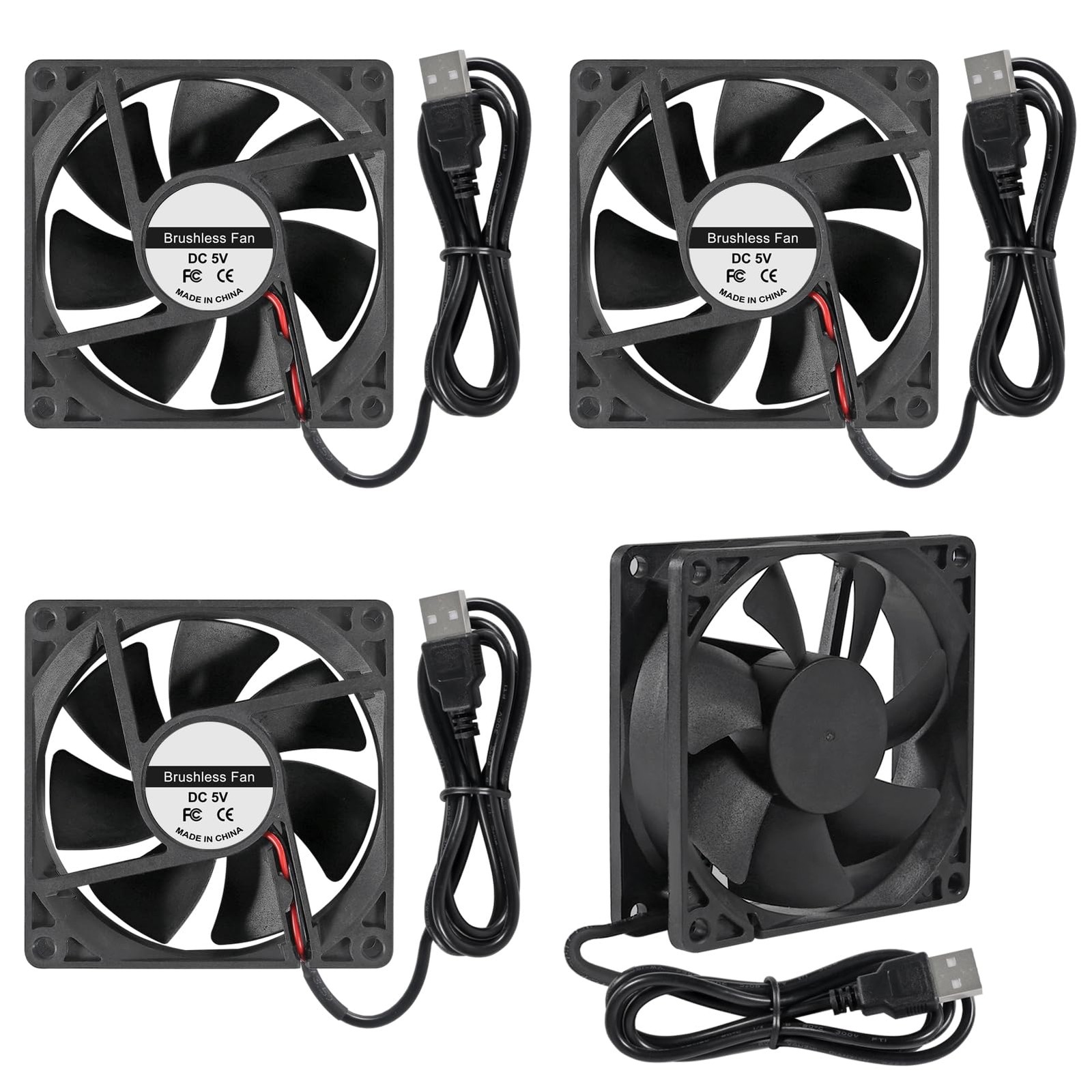 4pcs 8025 Cooling Fan 80x80x25mm DC 5V USB Cooler Brushless Fan 80mm Fan XH2.54