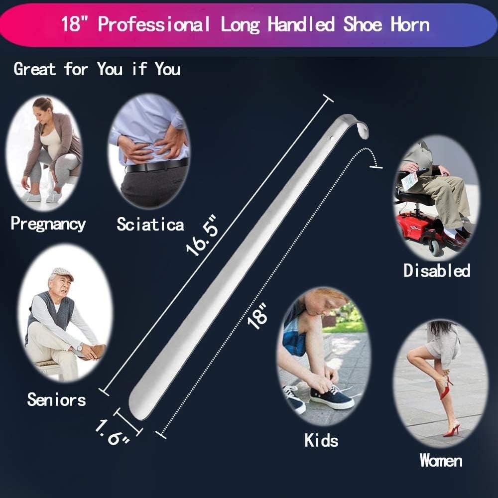 18 Metal Long Handle Shoe Horn for Seniors and Women - Durable Lightweight
