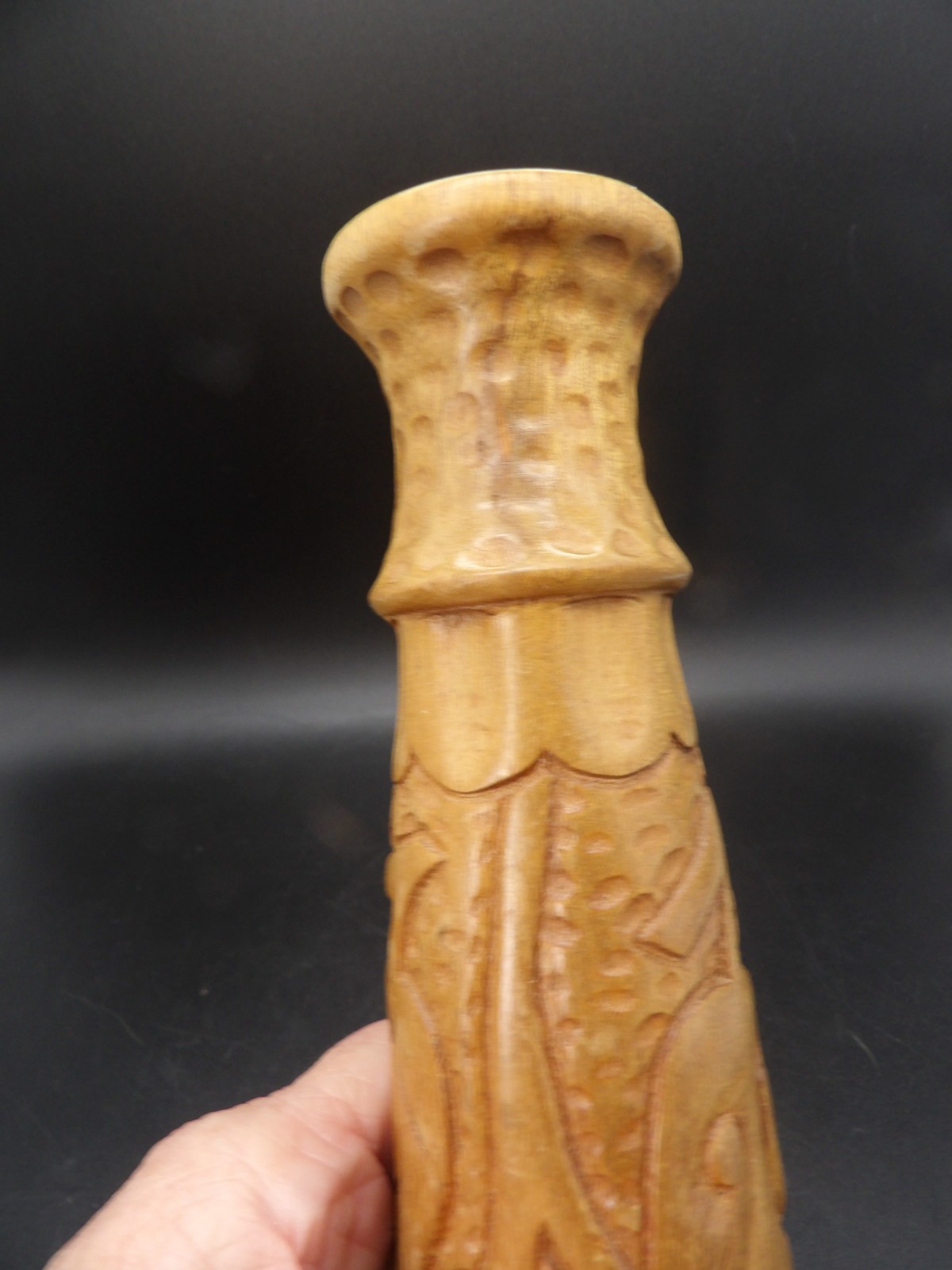 • Hand-Carved Wooden Vase / Decorative Vessel Tribal Folk Art