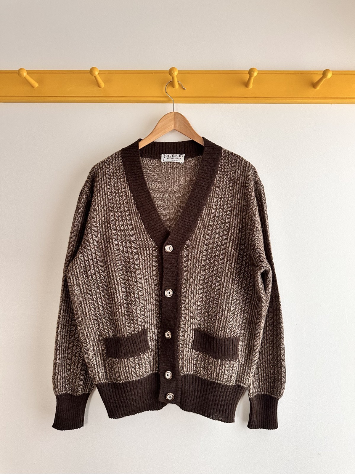GIVENCHY Paris vintage 70s wool brown and cream v-neck cardigan knit sweater 3 M