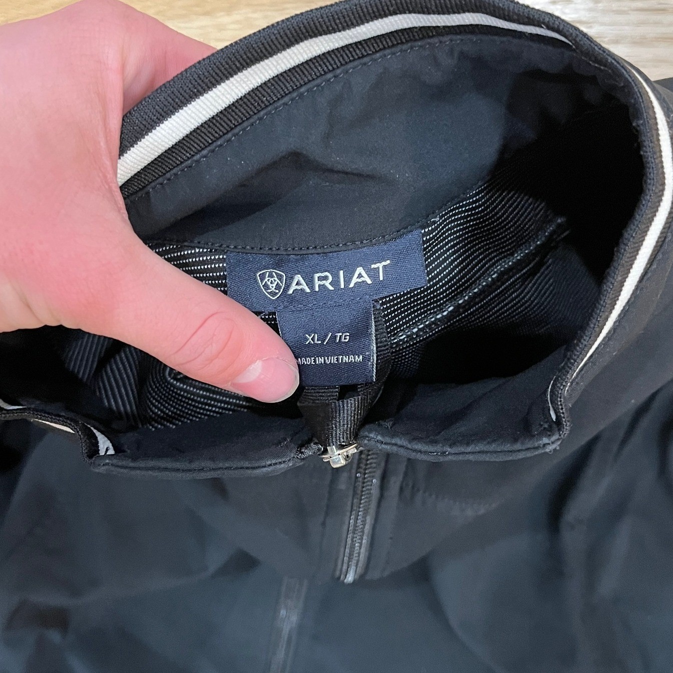 как выглядит Ariat Black Softshell Jacket Womens XL Riding Jacket Full Zip Horseshoe Logo фото