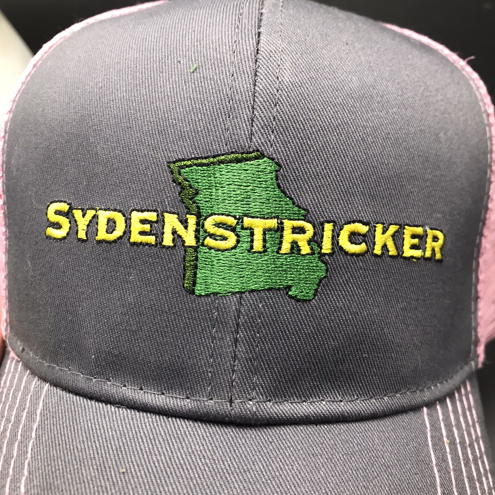 Sydenstricker Missouri John Deere Gray Pink Mesh Trucker Hat Ball Cap Snapback
