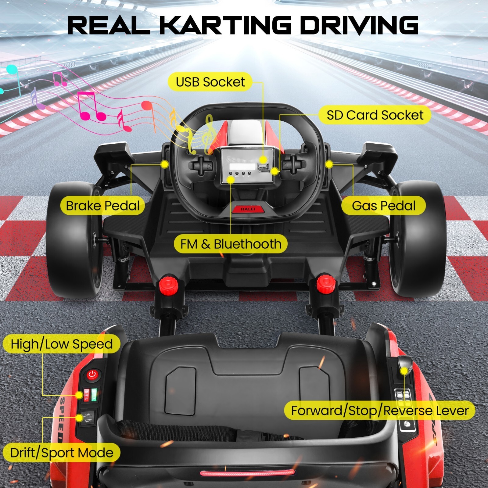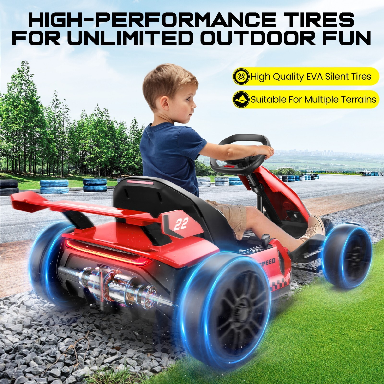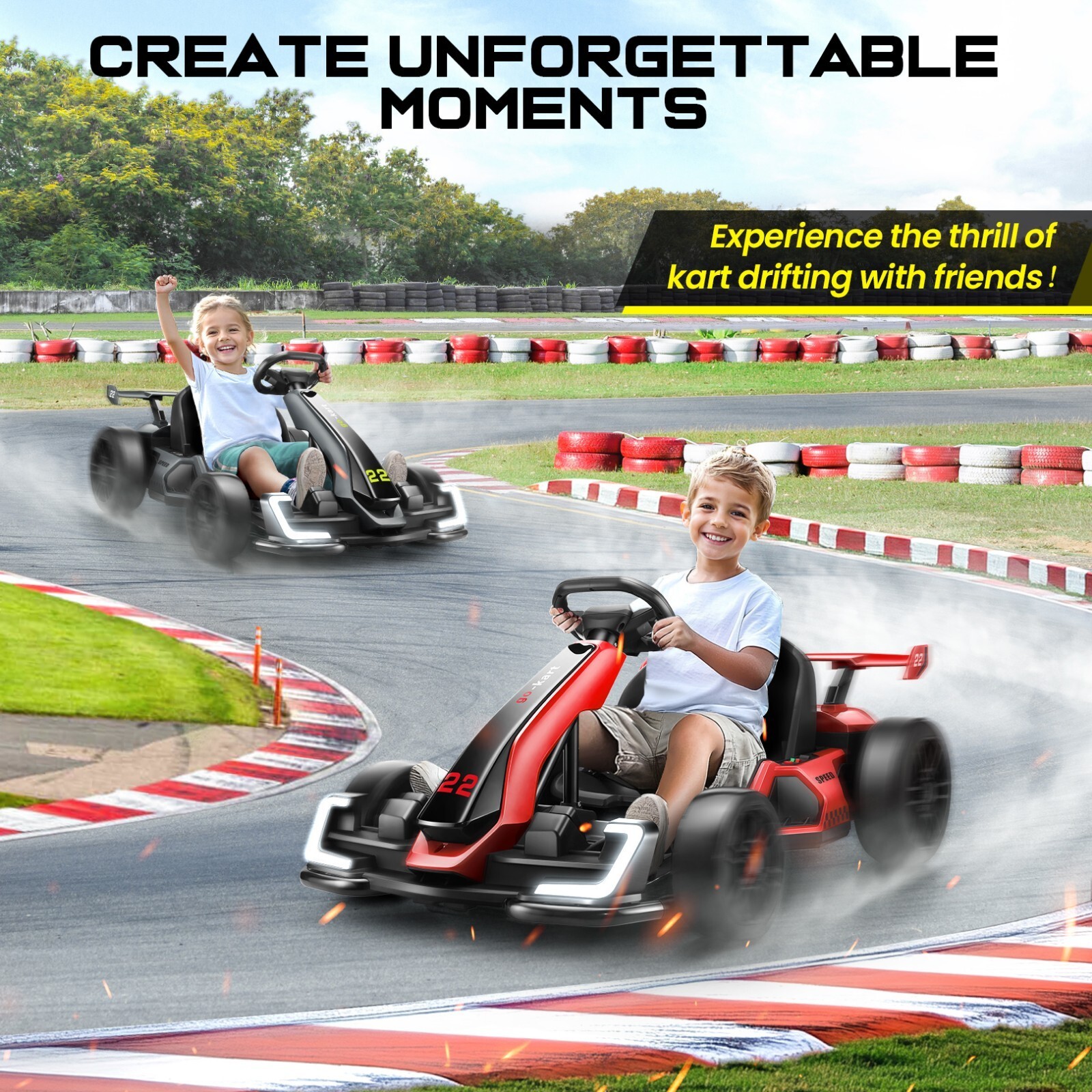 24V Electric Go Kart for Kids 2x150W Motor Powerful Drift Kart Adjustable Seat