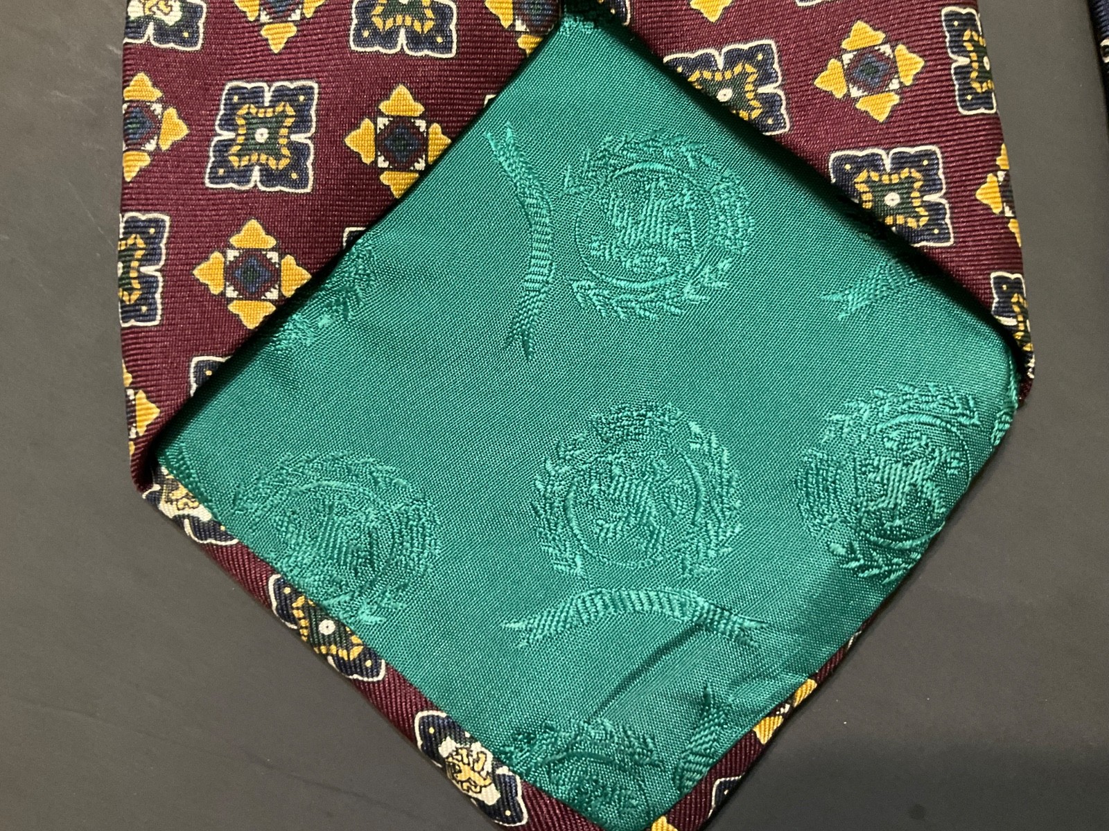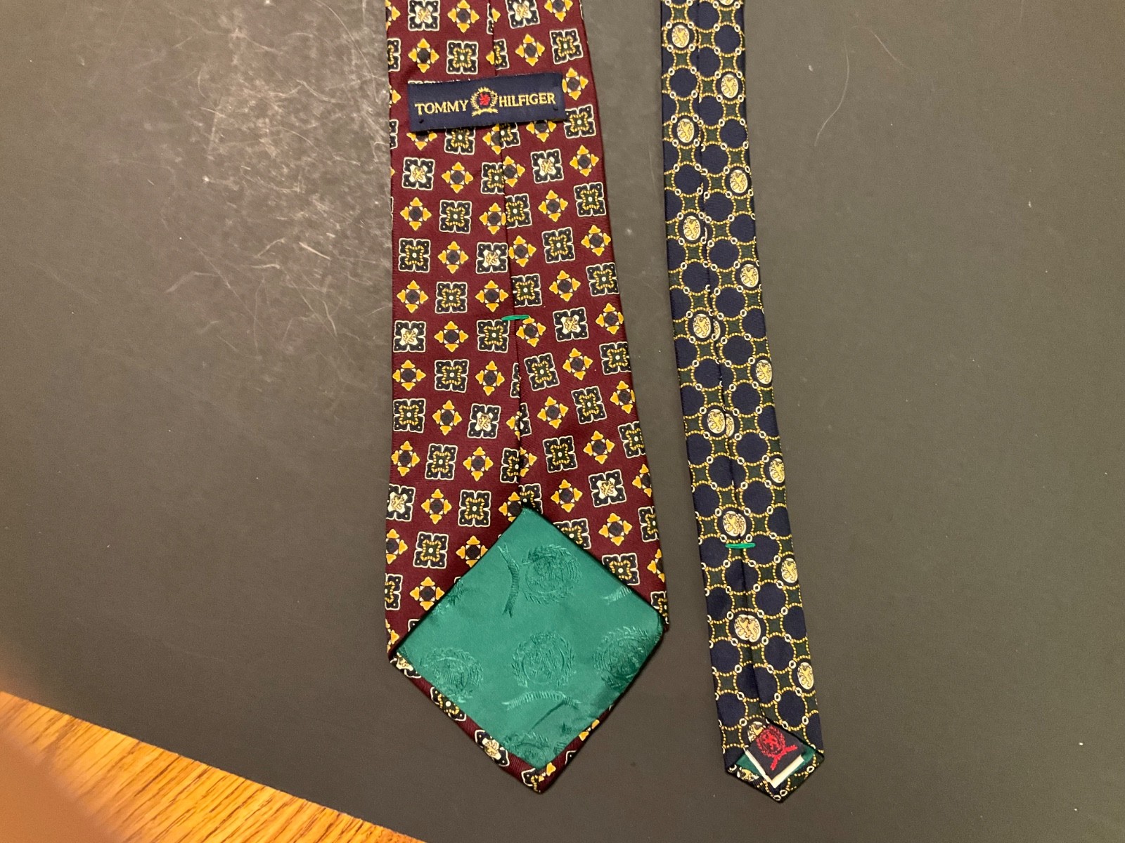 как выглядит Tommy Hilfiger 100 Silk Neck Tie Burgundy, yellow Navy Blue 4"W 57" L фото