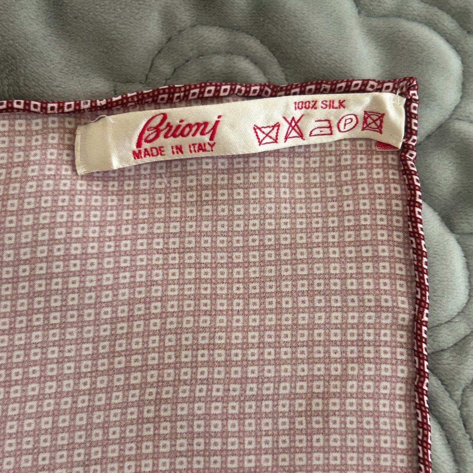 Brioni 100 Silk Pocket Square Red White Micro Dot Made in Italy Mens Accessory