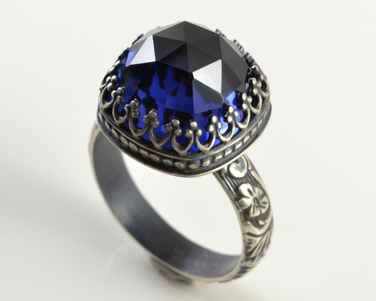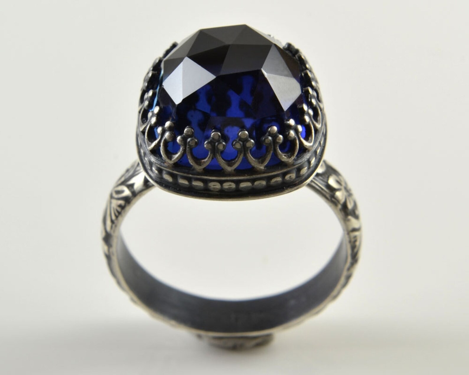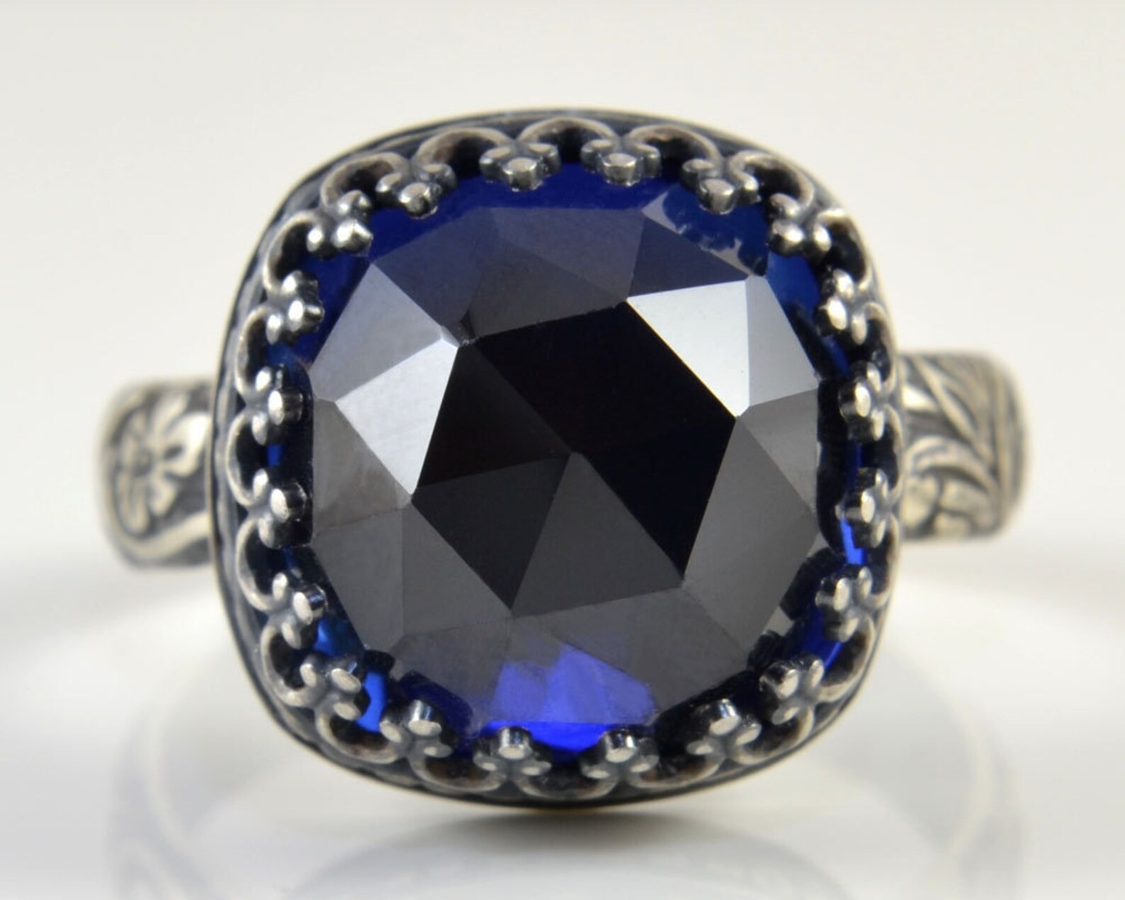 как выглядит Blue Sapphire Cocktail Ring/Sterling Silver/Faceted Cushion Square Gemstone фото