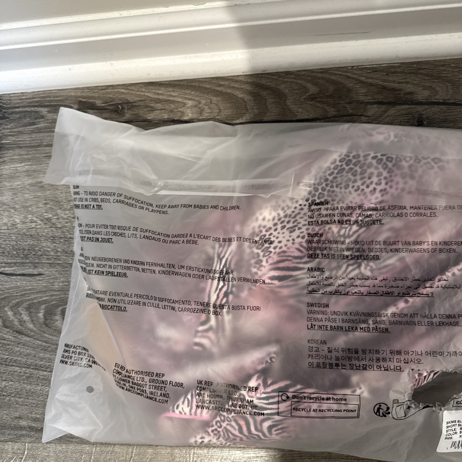 как выглядит Skims PJ Set Bloom Mini Animal Print XS SHORT Sleeve Drawstring Pant New In Bag фото