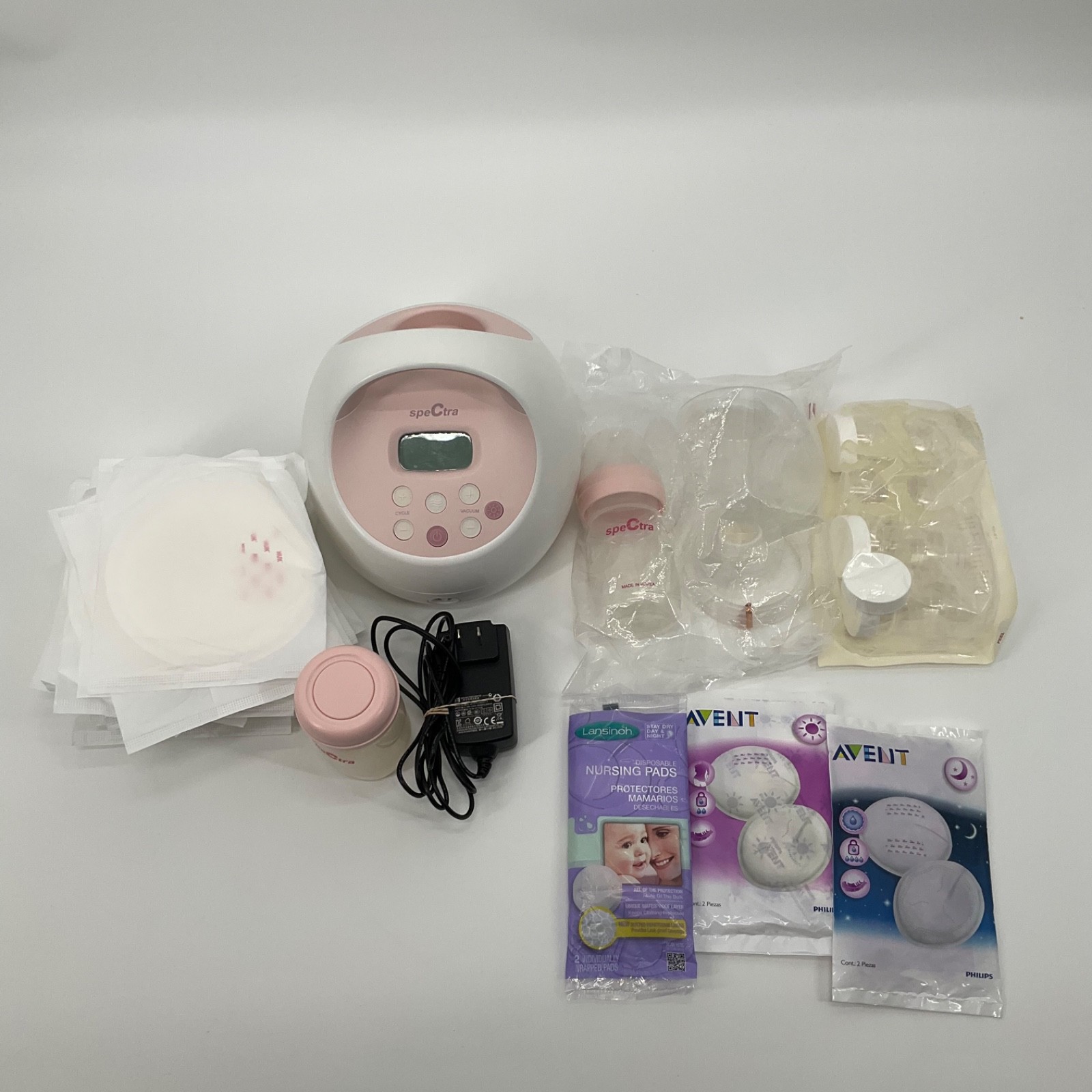 Set Includes: Breast Pad, Collection Bottle, Double Pumping Kit, flanges, valves, power adapter, night light
