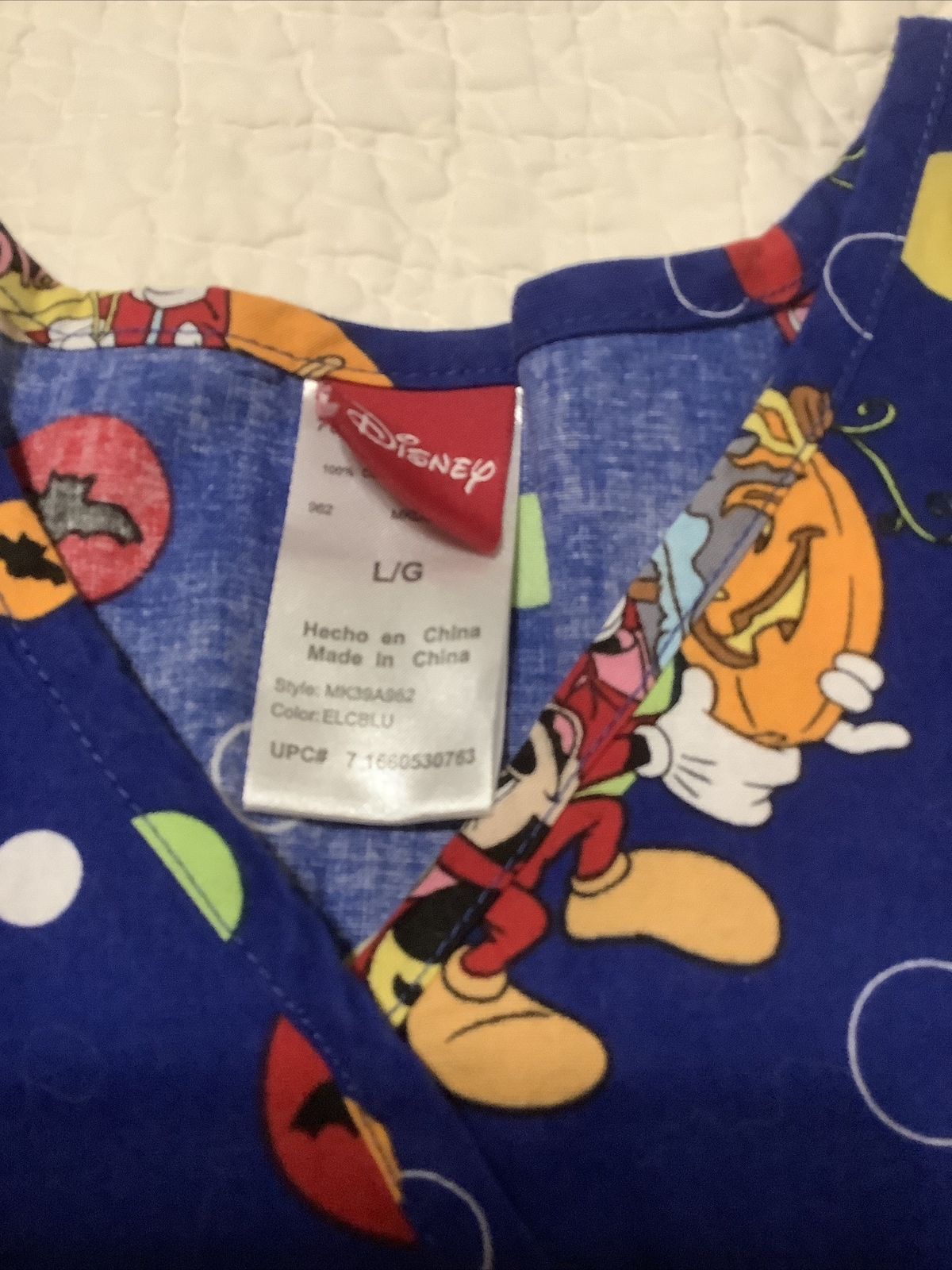 как выглядит Disney Womans Size L Scrub Top Mickey Mouse Friends Halloween Pockets Blue Mock фото