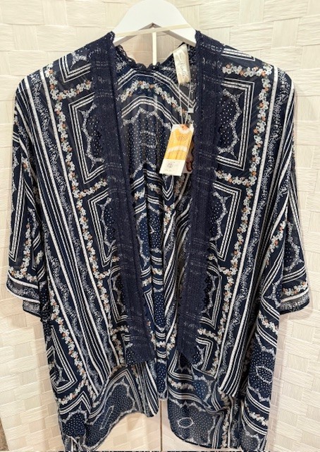 Women's Navy Blue Floral Sheer Kimono Style Cardigan Cover Up NWT