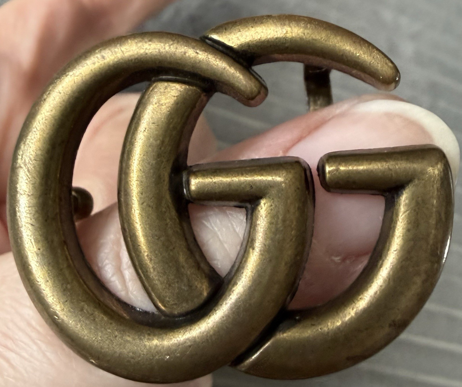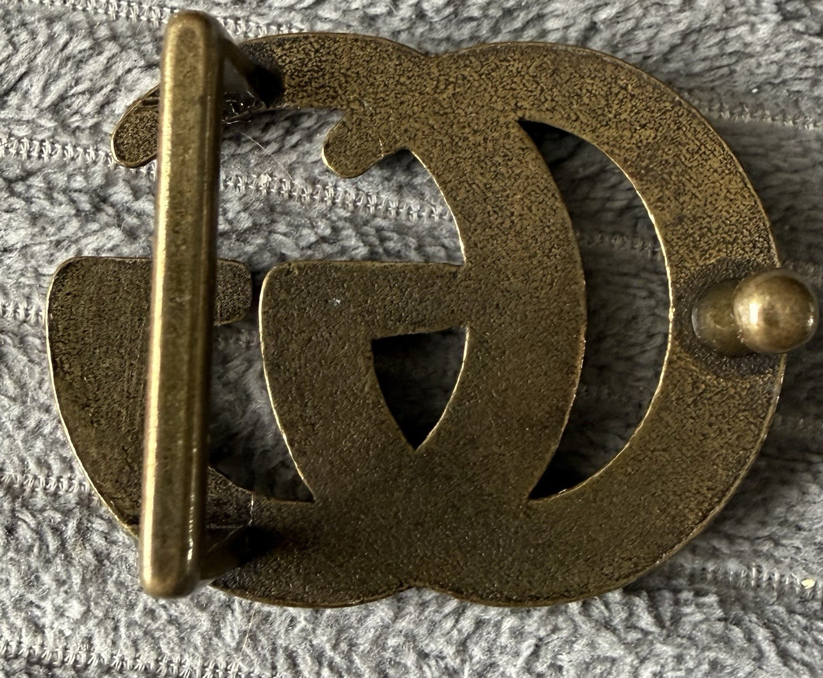 как выглядит Classic Style GG Belt Buckle Gucci Brushed Antique Brass Toned Small VTG фото