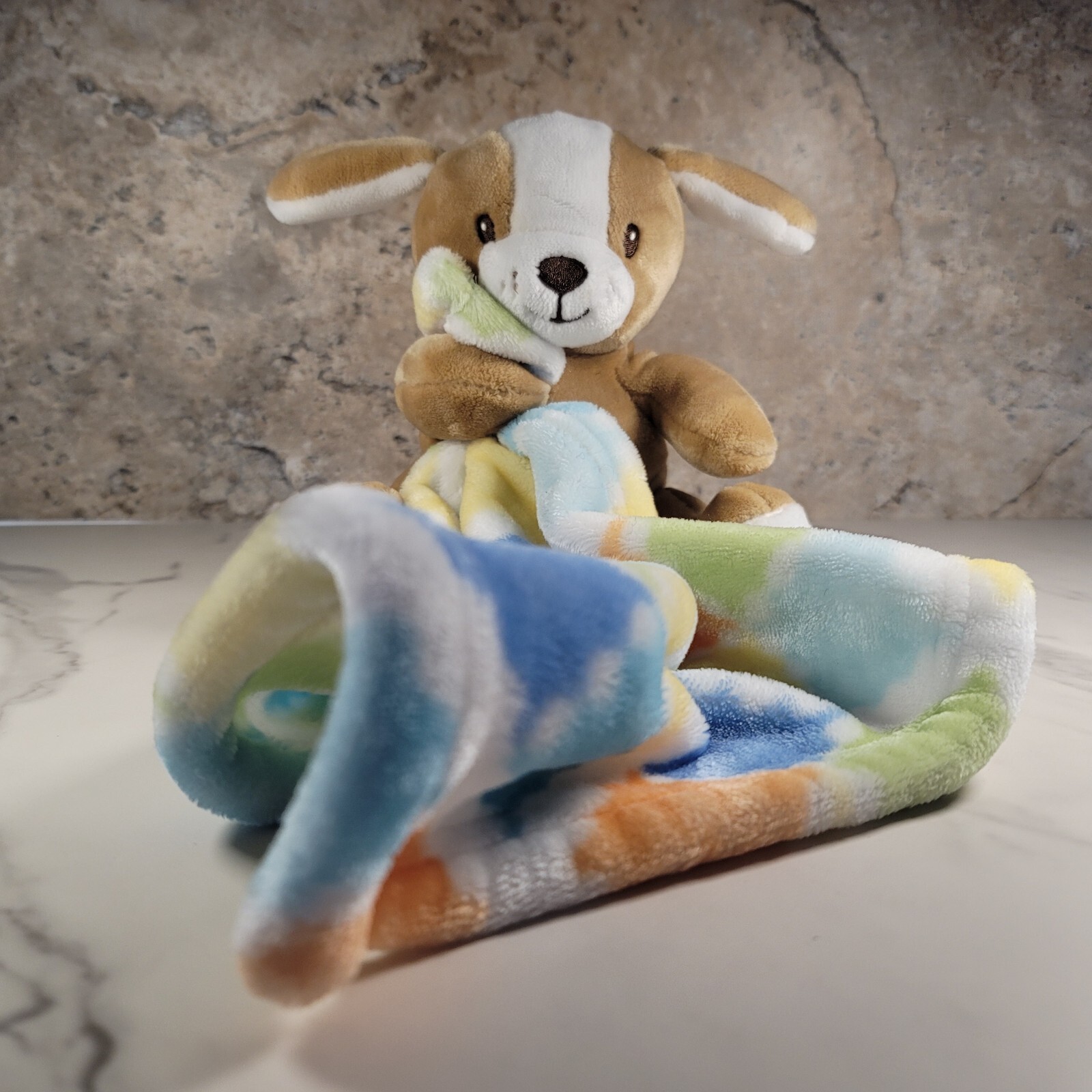 LITTLE MIRACLES BROWN WHITE PUPPY DOG PLUSH LOVEY SECURITY BLANKET
