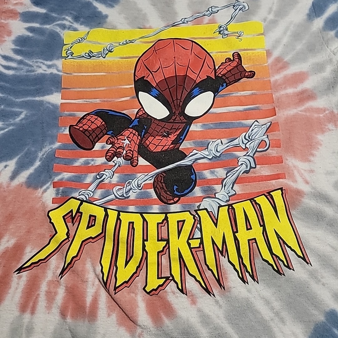 как выглядит Marvel Young Spiderman Webbing Tie-Dye Graphic Tee Red, Blue, Gray Youth XLarge фото