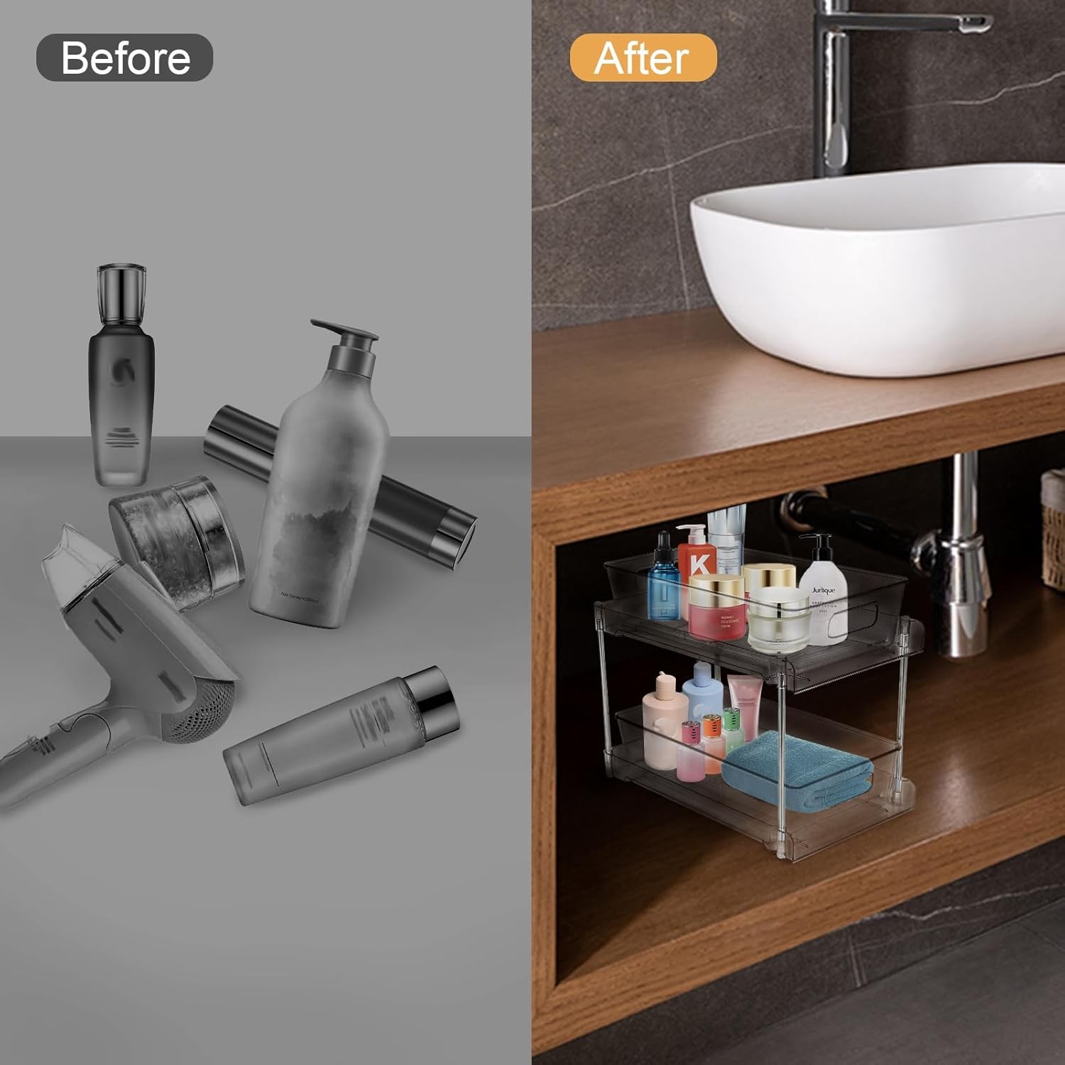 4 Pack Bathroom Organizers and Storage, 2-Tier Clear Under Sink Organizer,