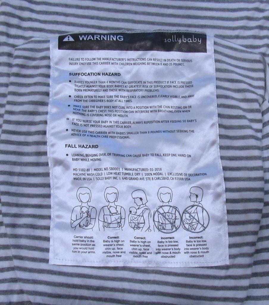 SOLLY BABY Soft Light Wrap Carrier Natural GRAY STRIPE 100 Tencel Modal - USA