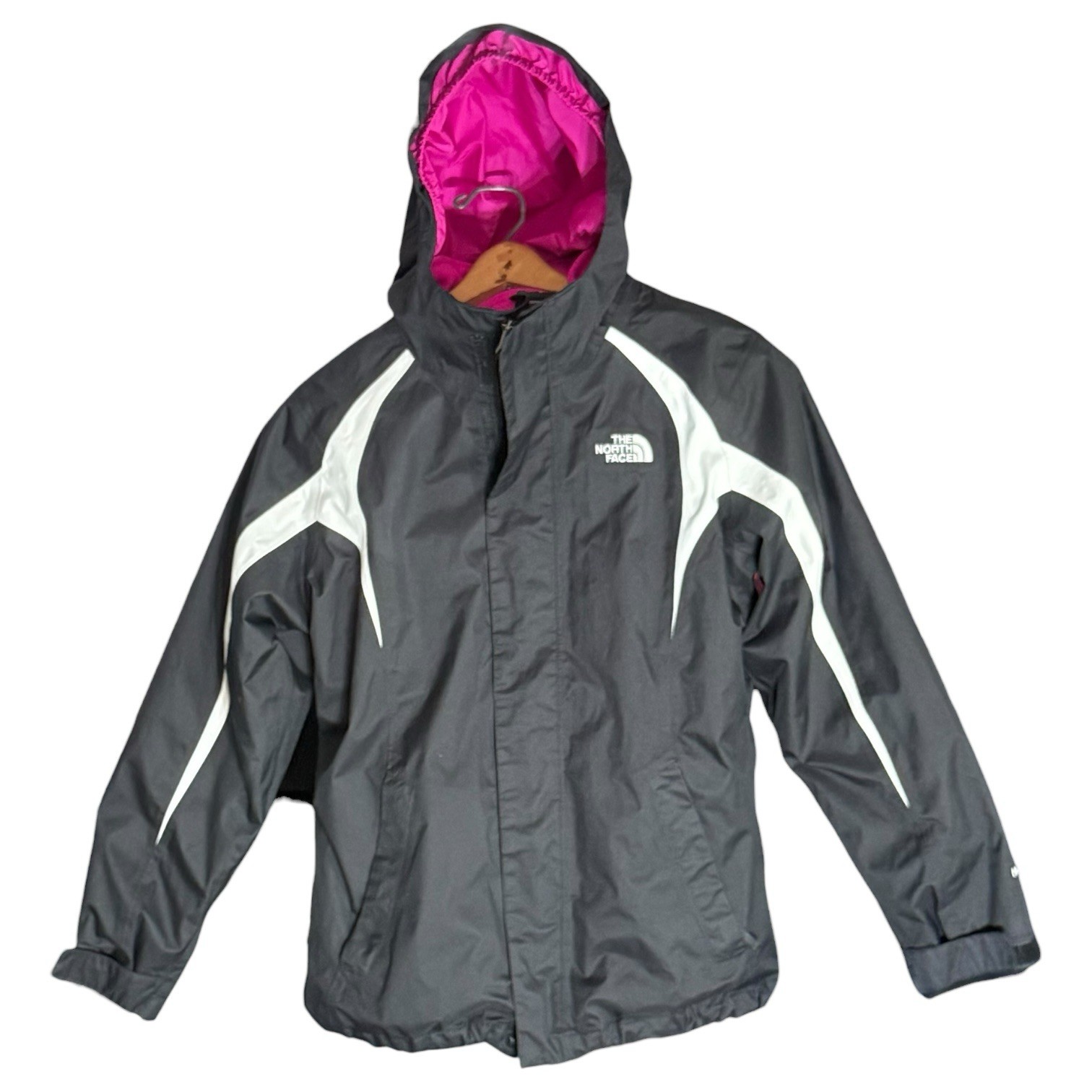 как выглядит The North Face Coat Youth Large Hood Black Purple Zip Fleece Jacket Utility Soft фото