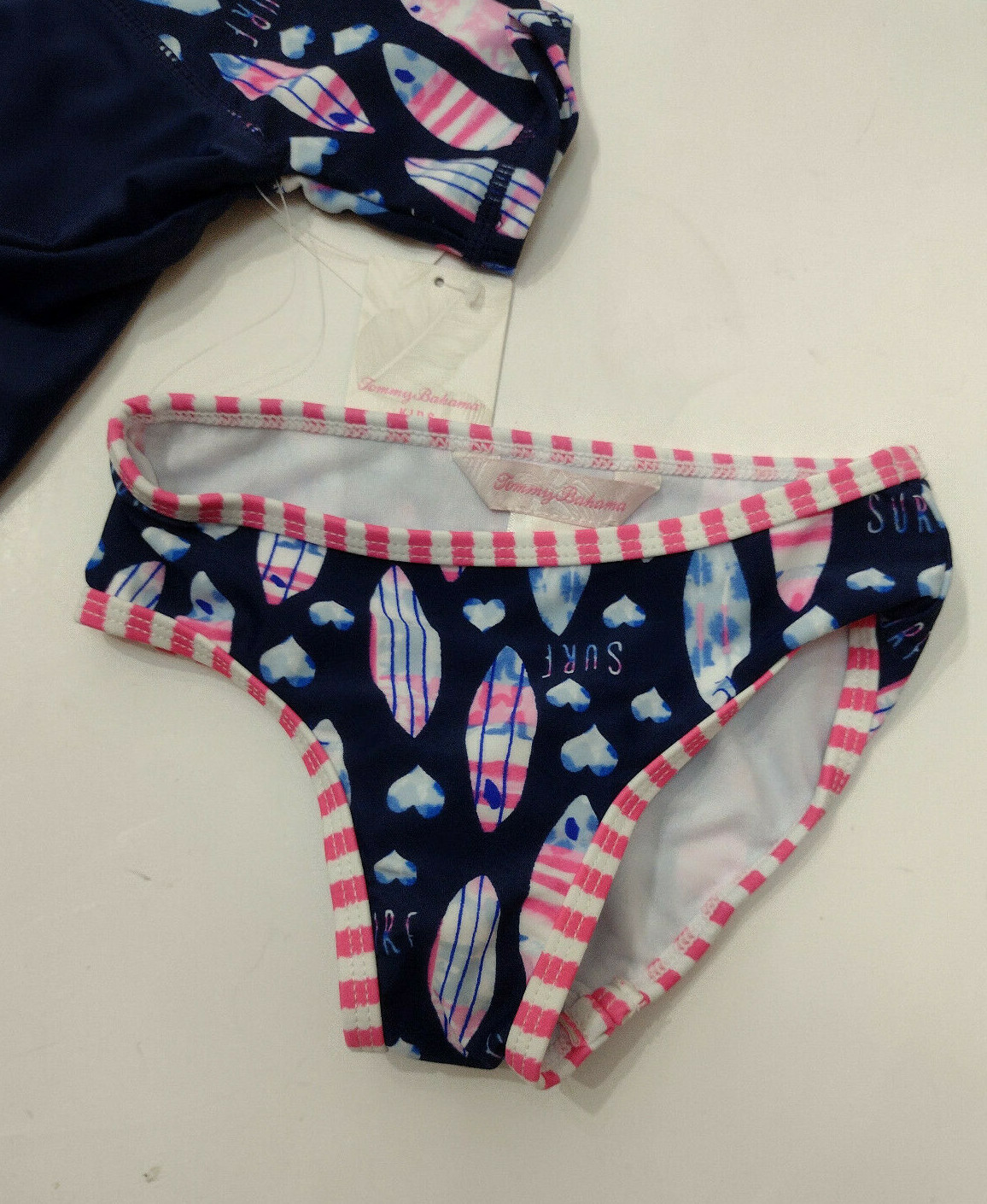 Tommy Bahama Rash Guard Tankini Swimsuit 12 M Girls 2 Piece Blue Pink Surfboard