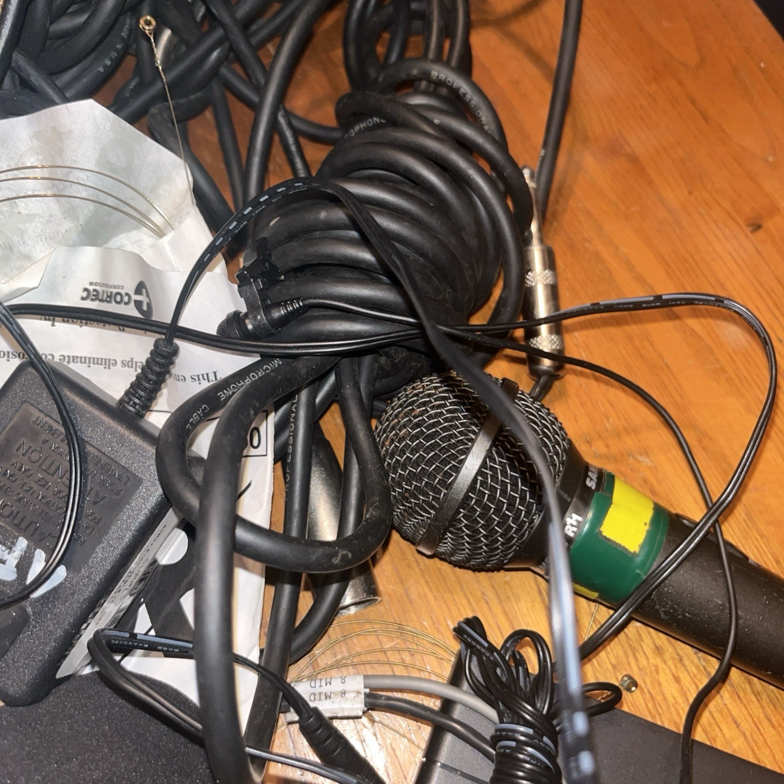 как выглядит Massive Lot Of Microphones Lot Of  Microphones Cords Guitar String Plus More фото