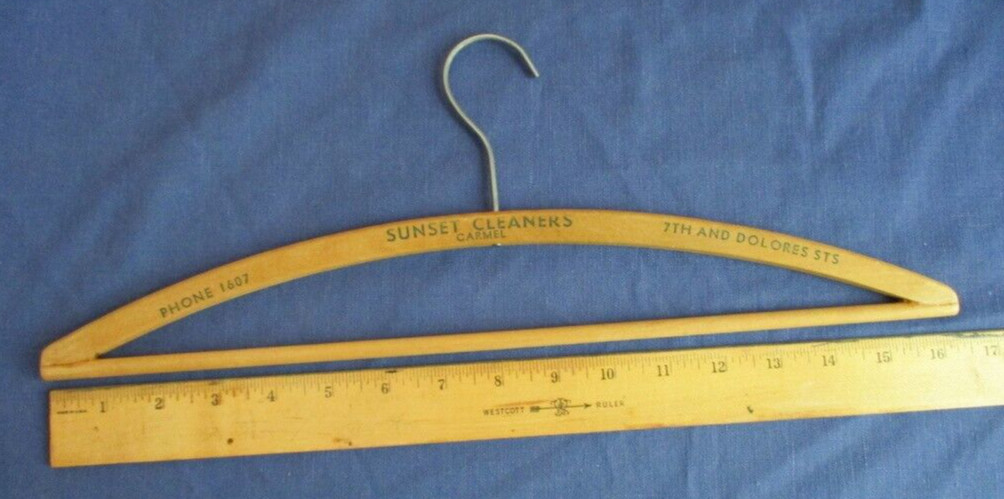 VINTAGE Wooden Advertising Hanger SUNSET CARMEL CA GEORGE Cleaners SAN DIEGO Cal