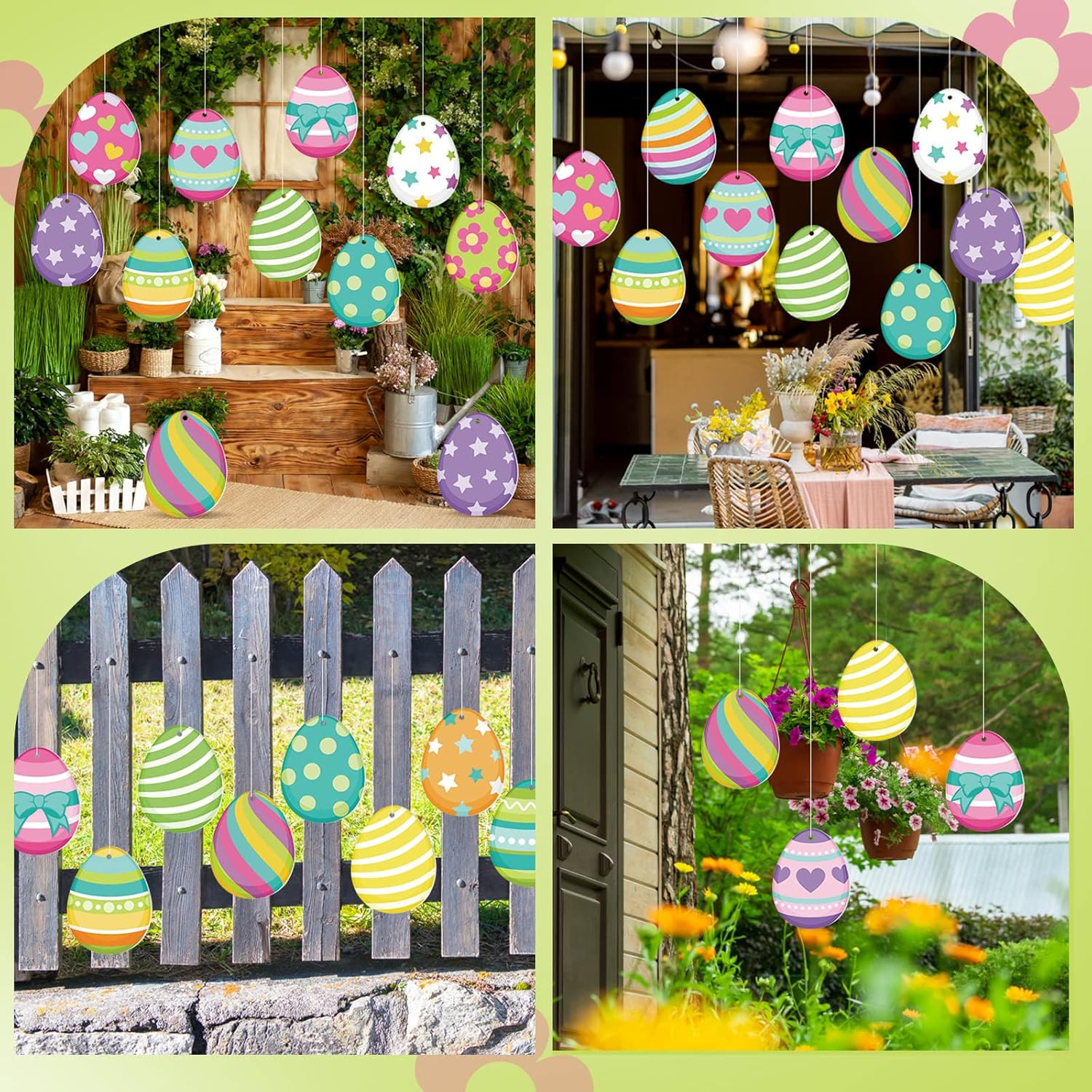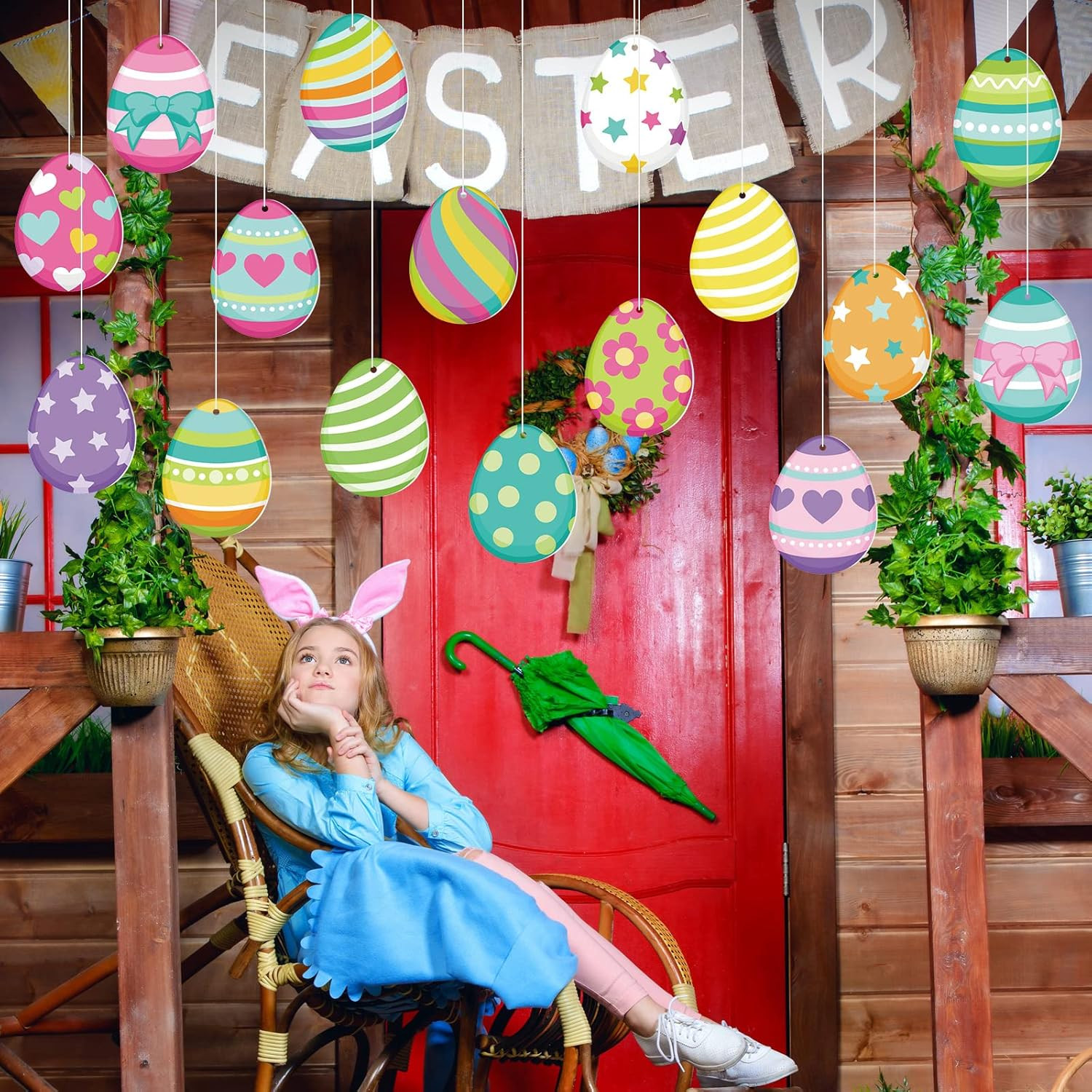 16 Pcs Easter Decorations Outdoor Easter Eggs Hanging Yard Signs 7.9 Inch Large