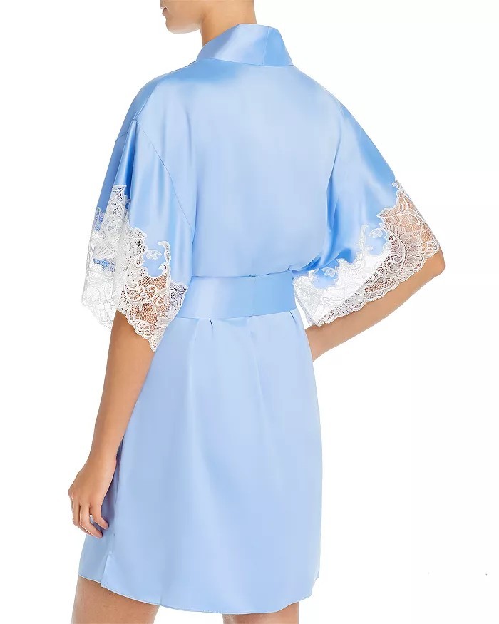 как выглядит NATORI Plume Wrap Short Robe Boat Blue w/ White Lace L MSRP 160 NEW фото
