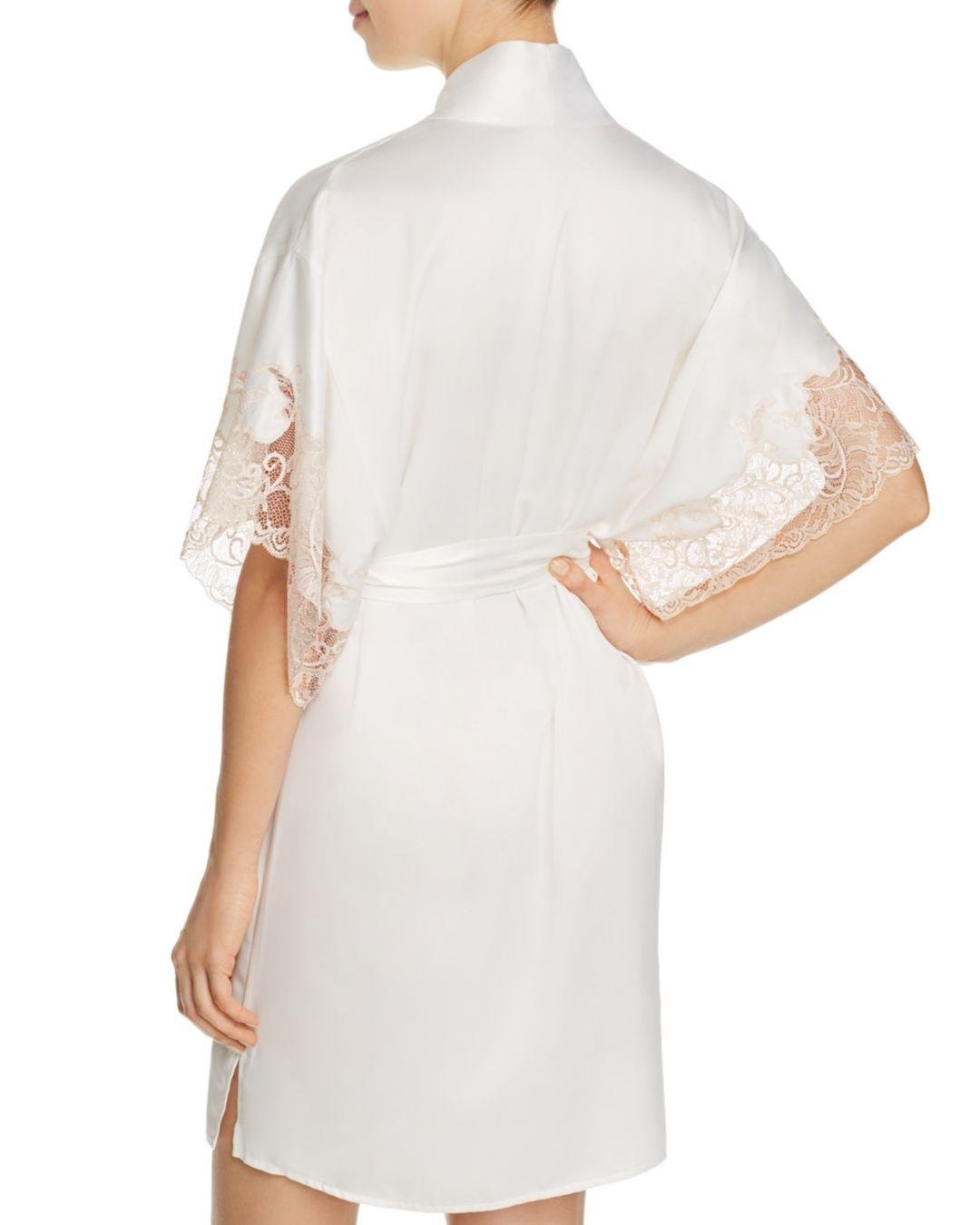 как выглядит NATORI Plume Wrap Short Robe Warm White w/ Pink Dogwood Lace XL MSRP 160 NEW фото